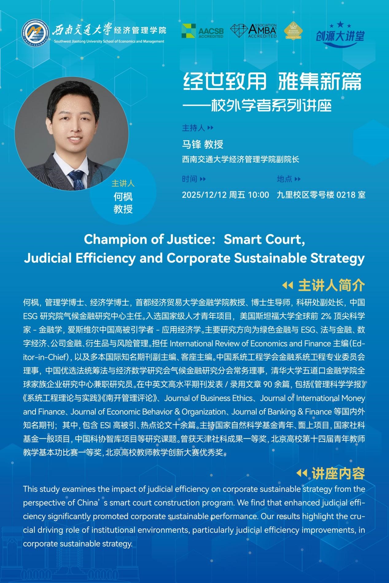 Defense Time: 3:30 p.m., Friday, November 21, 2025Defense Location: Room 0411, Teaching Building 0, Jiuli CampusPersonal Profile: Gao Lijun (1990.12-), Female, PhD candidate in Management Science and Engineering, School of Economics and Management, Southwest Jiaotong UniversityResearch Interests: Healthcare Service Operations Management, Cooperative Game Theory, and Mechanism DesignThesis Title: Referral ...