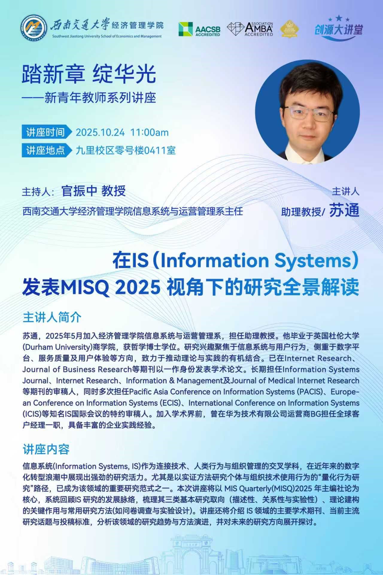 Speaker ProfileSU Tong is an incoming Assistant Professor in Department of Information Systems and Operations Management at School of Economics and Management, joining in May 2025. He holds a Ph.D. from Durham University Business School, UK. His research interests lie at the intersection of information systems and user behavior, with a focus on digital platforms, service quality, and user experience....