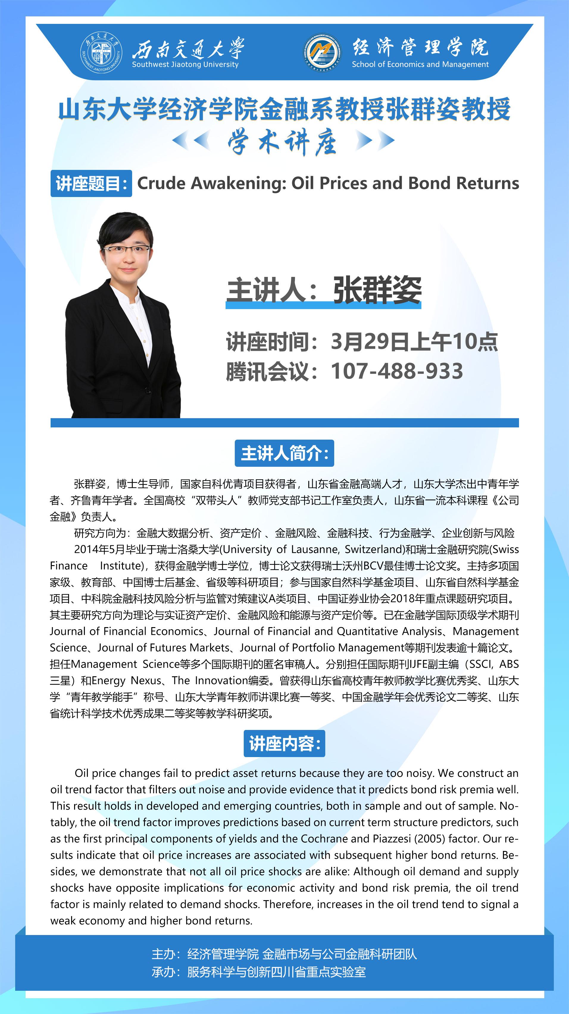 山东大学经济学院金融系教授张群姿教授学术讲座