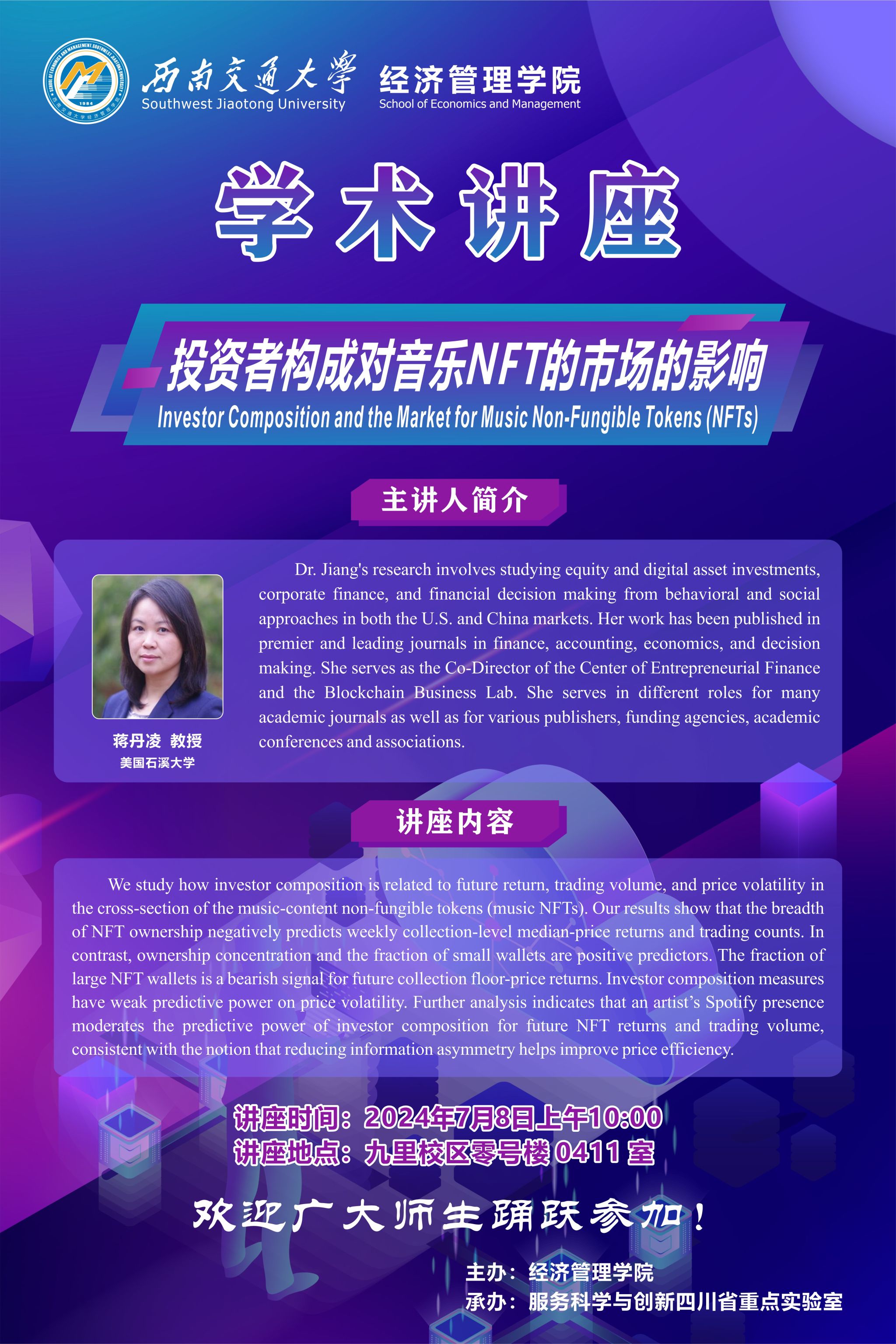 美国石溪大学蒋丹凌教授学术讲座
