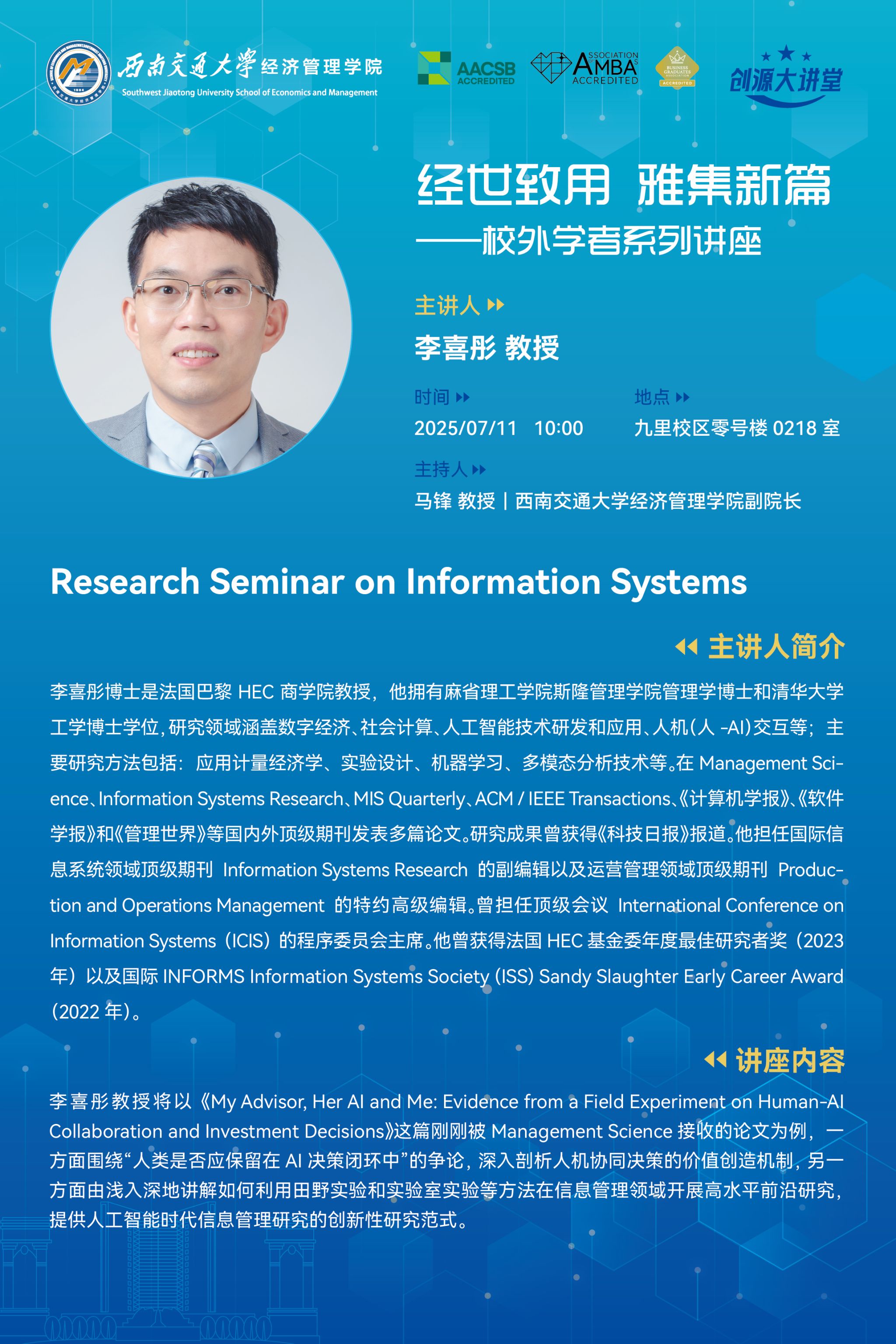法国巴黎HEC商学院李喜彤教授学术讲座