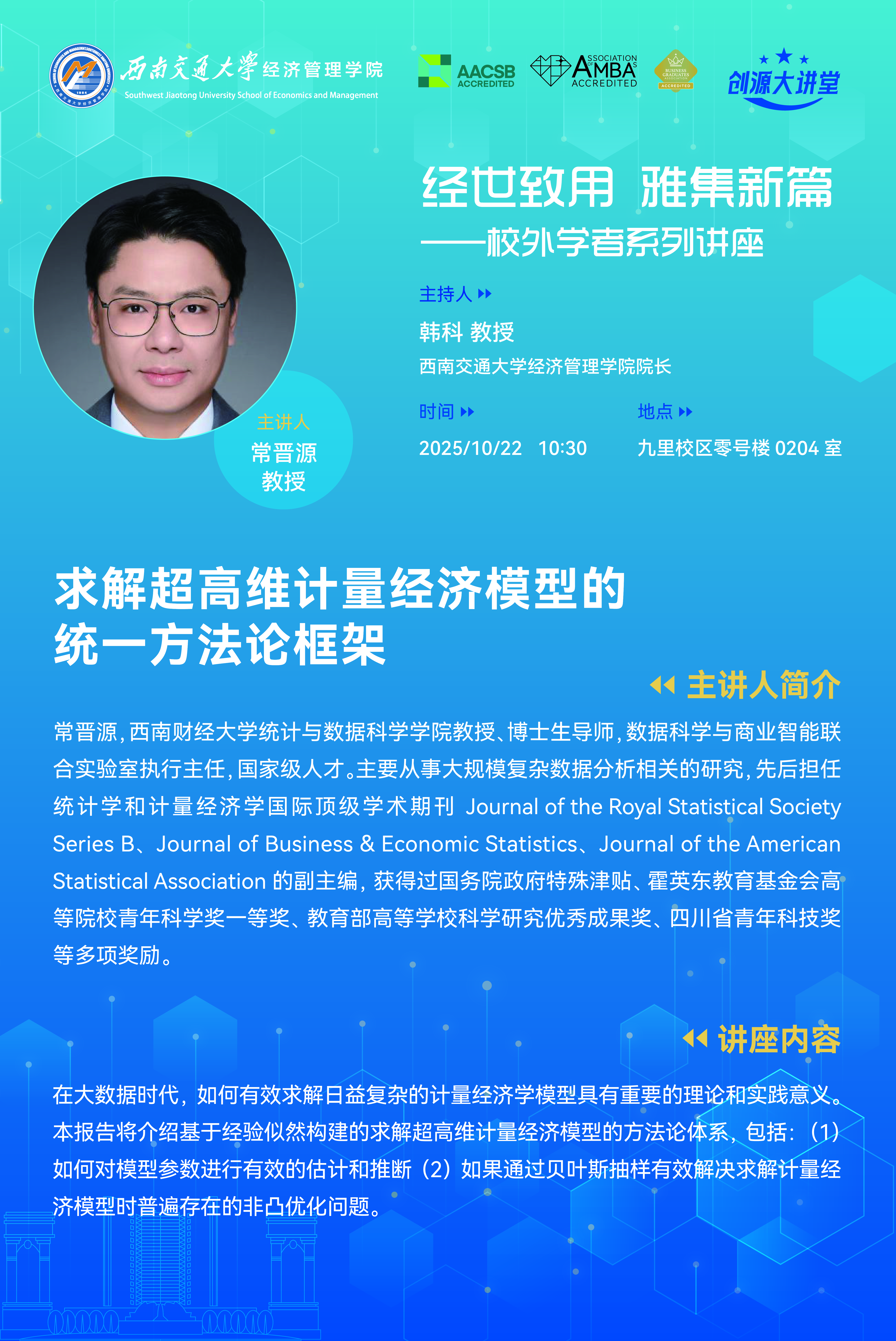 西南财经大学统计与数据科学学院常晋源教授学术讲座
