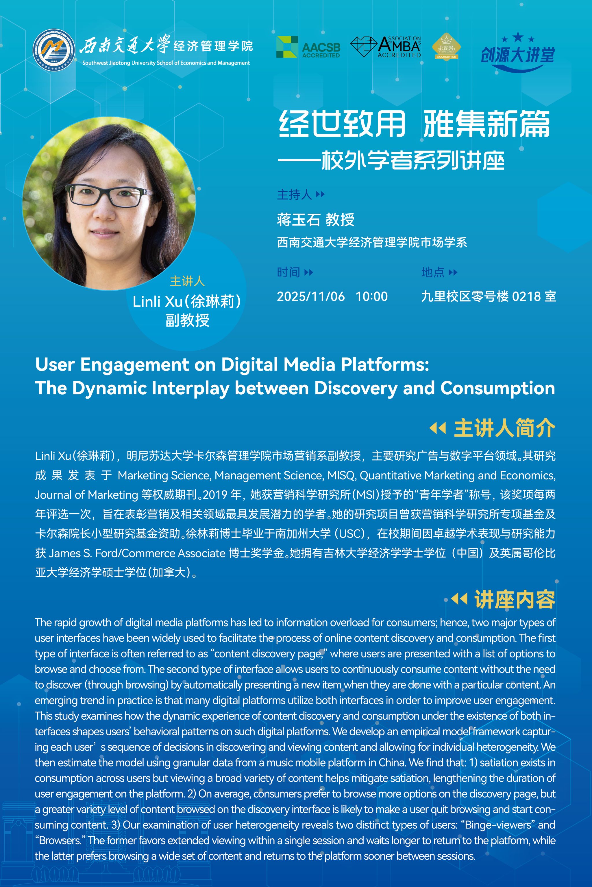 美国明尼苏达大学卡尔森管理学院Linli Xu(徐琳莉)副教授学术讲座