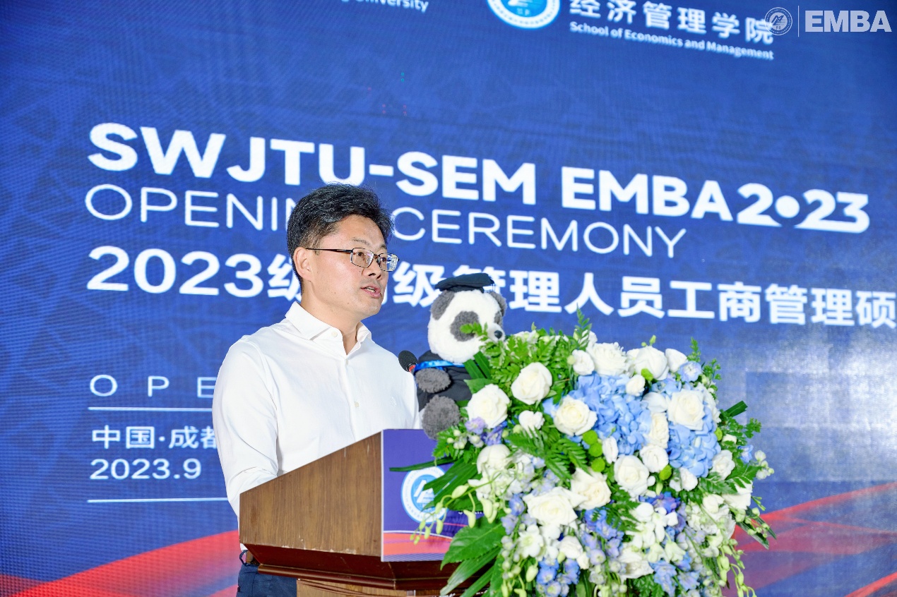 Deputy President Liu Changjun delivered a speech, extending a warm welcome and congratulations to the new students on behalf of the university. He expressed heartfelt gratitude to individuals from various sectors who have contributed to the EMBA education cause. Liu introduced the university's history, characteristics, and achievements, emphasizing the significant role and position of EMBA education in the university's development strategy. Deputy President Liu Changjun urged everyone to cultivate innovative thinking, maintain a long-term perspective, and develop a broad mindset to tackle the challenges of the times. He hoped that the new students, relying on the talent cultivation system of the school, would become cross-disciplinary and cross-industry elites, ready to set sail on their journey.