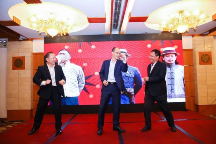 接下来的校友们自编自排的精彩文艺表演、让人捧腹大笑又深有感触:三地EMBA班班长:王文佐、王开辉和梁国锋3位大哥风趣搞笑、颠覆形象的上演小品舞蹈《三个大哥》讲述了交大的相知与相识;