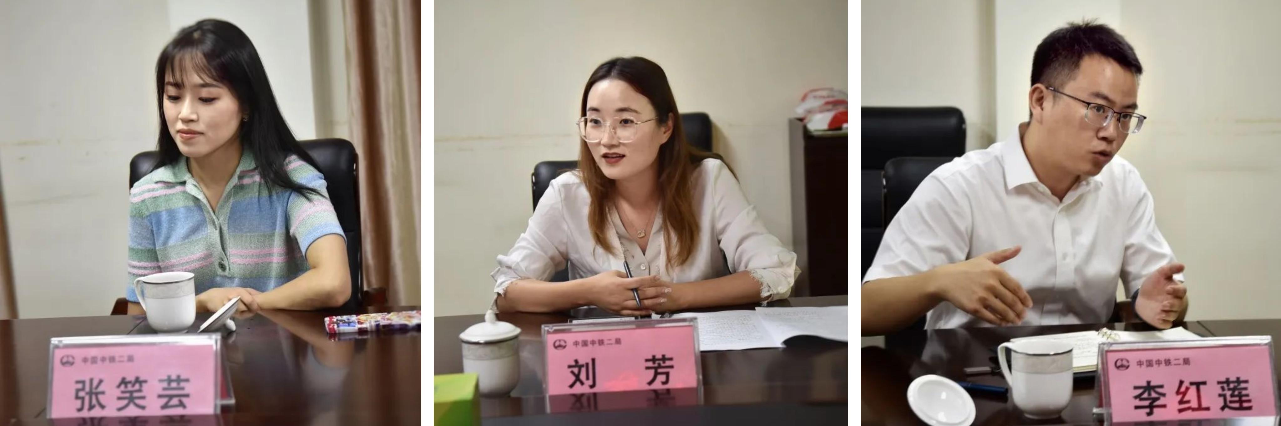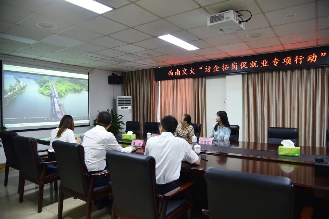 国内合作与校友事务中心主任赵冬梅副教授、副主任张笑芸老师一行到访中铁二局建筑公司,开展“访企拓岗促就业专项行动”交流活动。中铁二局集团公司人力资源部职员科科长刘芳,建筑公司党委委员、纪委书记蒲斌,人力资源部部长李红莲参加活动。