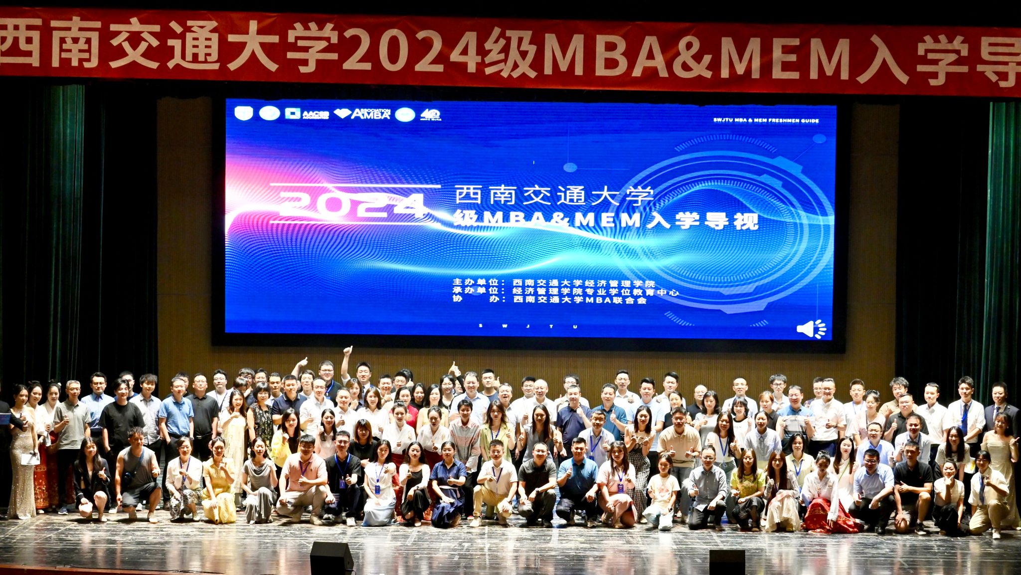校歌激昂的旋律中,全场师生同声共鸣。伴随着歌声的落幕,2024级MBA&MEM入学导视活动也在掌声中画上了圆满的句点。新的起点,新的征程,希望2024级的同学们能够肩负时代使命,珍惜青春年华,秉承和弘扬“竢实扬华,自强不息”的交大精神,续写辉煌篇章!