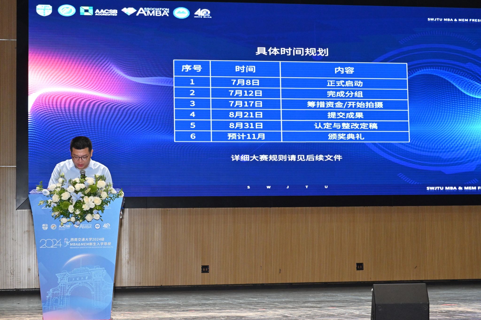 上午9时30分,2024级MBA&MEM新生入学导视仪式在庄严雄壮的国歌声中拉开序幕。