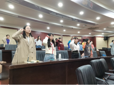 活动尾声,在五四青年节到来之际,主持人组织支部全体团员重温入团誓词,铿锵誓言铭刻入团初心,献礼建团百年。