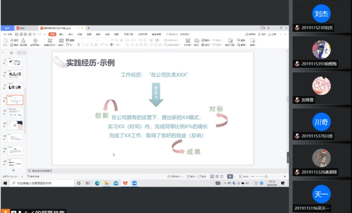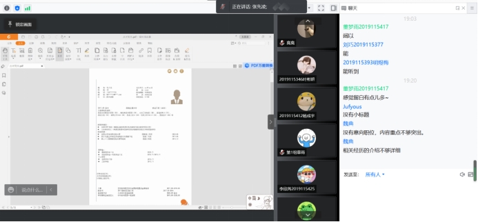 2019级本科生举办的简历撰写技巧分享活动在腾讯会议线上平台举行,本次讲座由本科2019级辅导员向起锐主持,本科2021级辅导员张先凌作为受邀嘉宾针对具体案例进行分享。