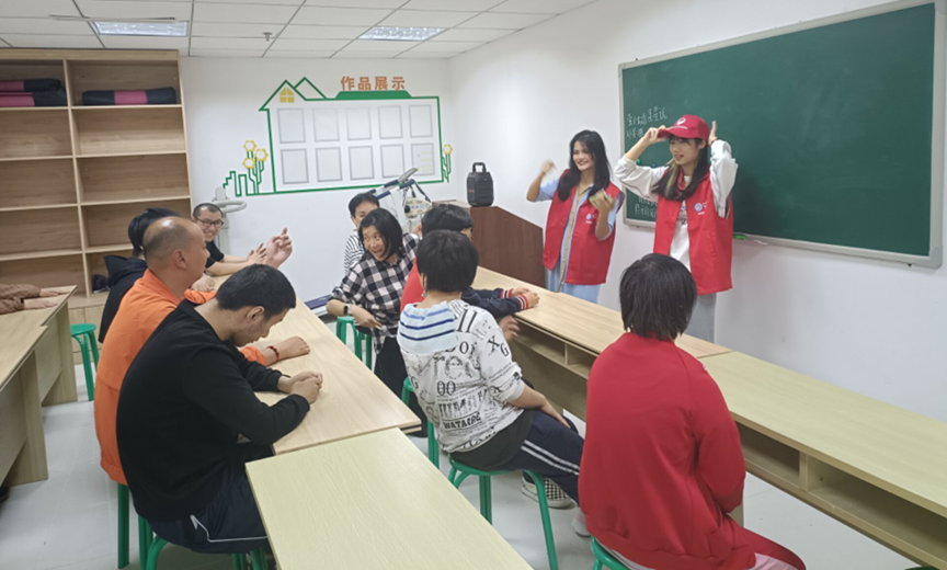 4月11日,9名经管青协志愿者经过校内培训,在了解基地学员的基本情况后,于下午两点来到位于金牛区的阳光家园进行志愿服务。