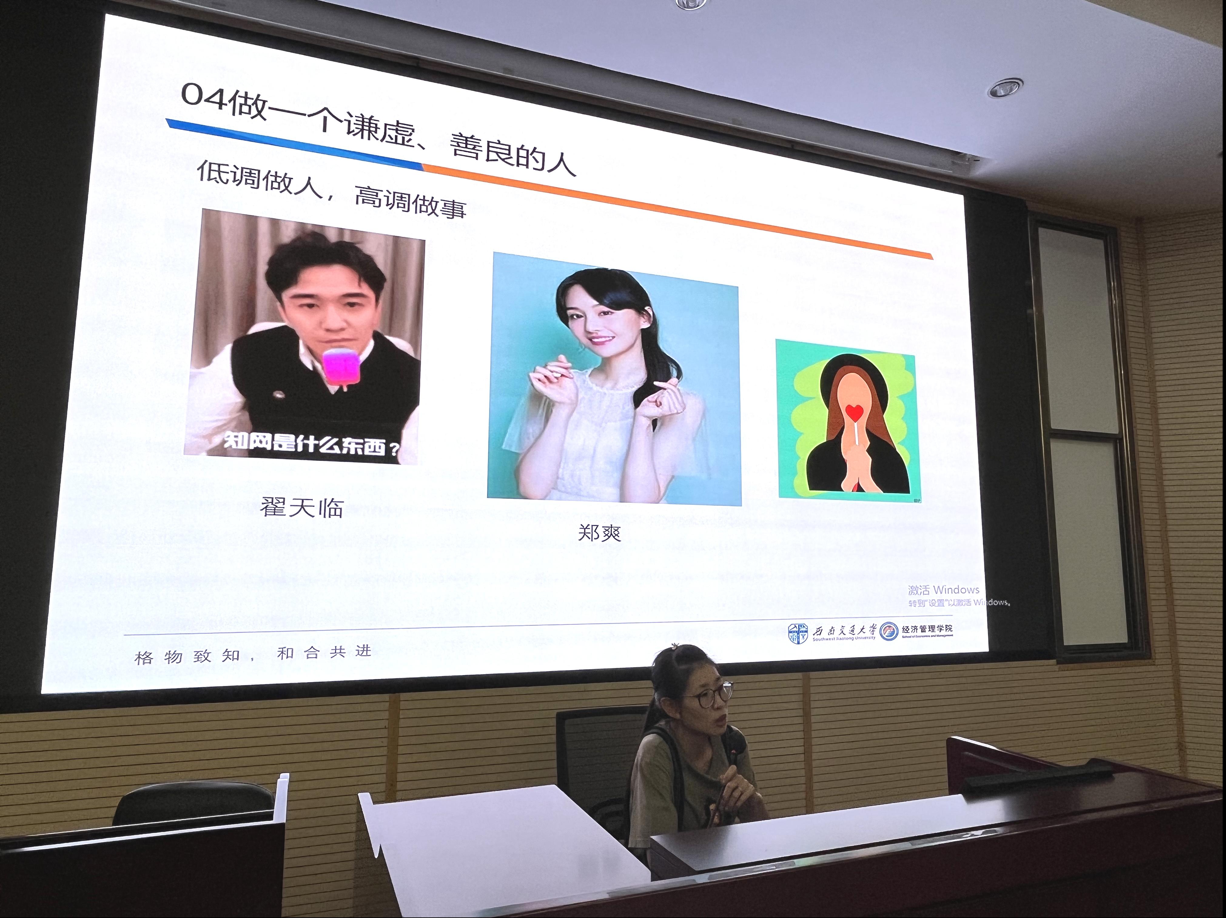 团委书记贾佳老师为本次新生入学教育进行宣讲。首先,贾佳老师对迎新活动进行了总结并对研会的工作进行了介绍,并借由最新的电影《孤注一掷》为同学们普及了防范电信诈骗的重要性。