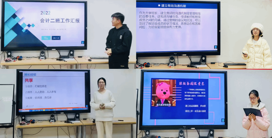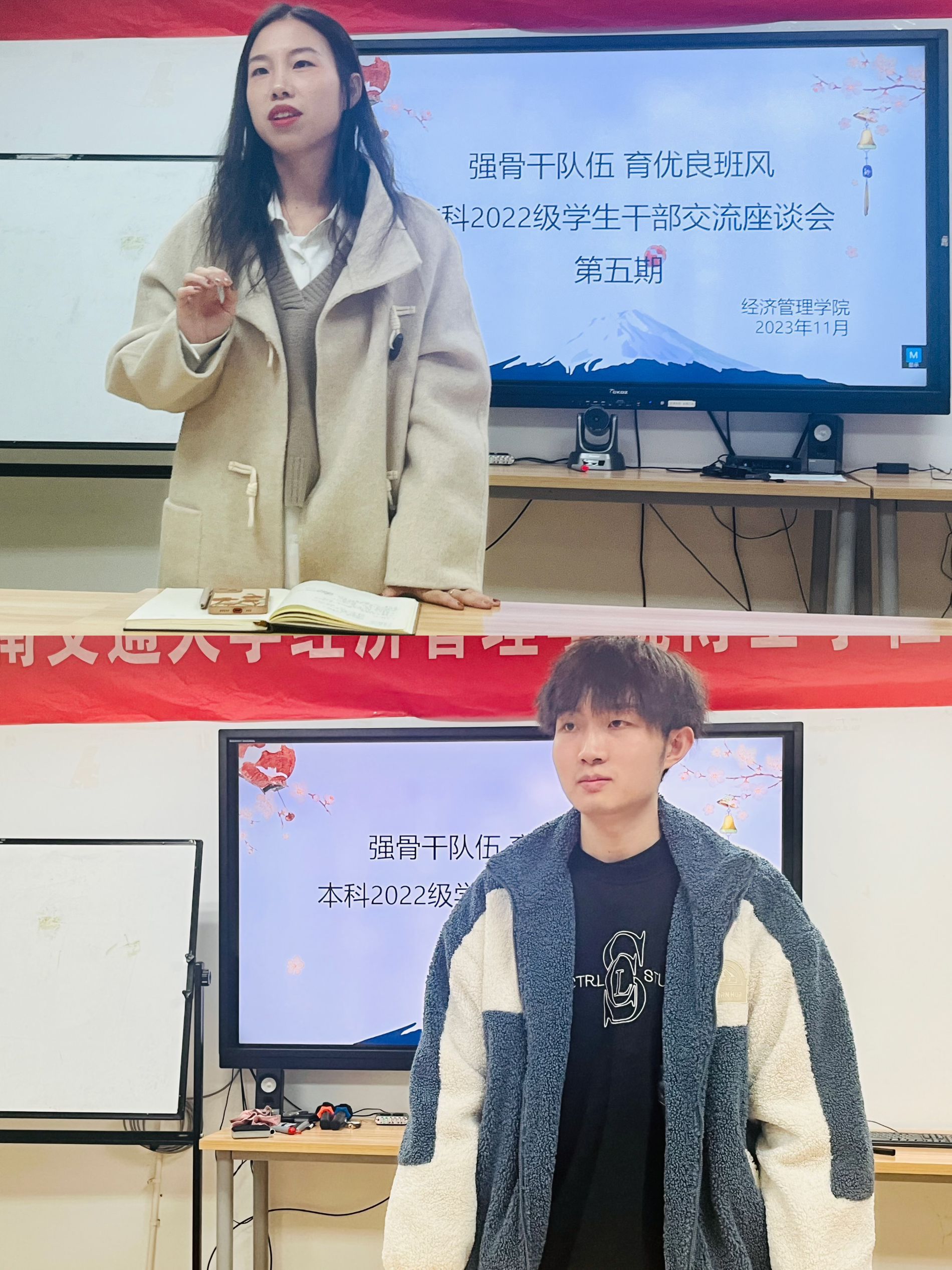 各班长结合近期开展的各项班级活动以及班委工作概况,对班级工作、班风学风建设作出总结,此外,班长们就班级建设中所遇到的疑难问题和所感所悟展开交流分享,包括班级活动的策划开展、提高团队协作效率的经验、调动班级积极性的办法等。各位班长坦诚交流、相互学习、取长补短、收获颇多。