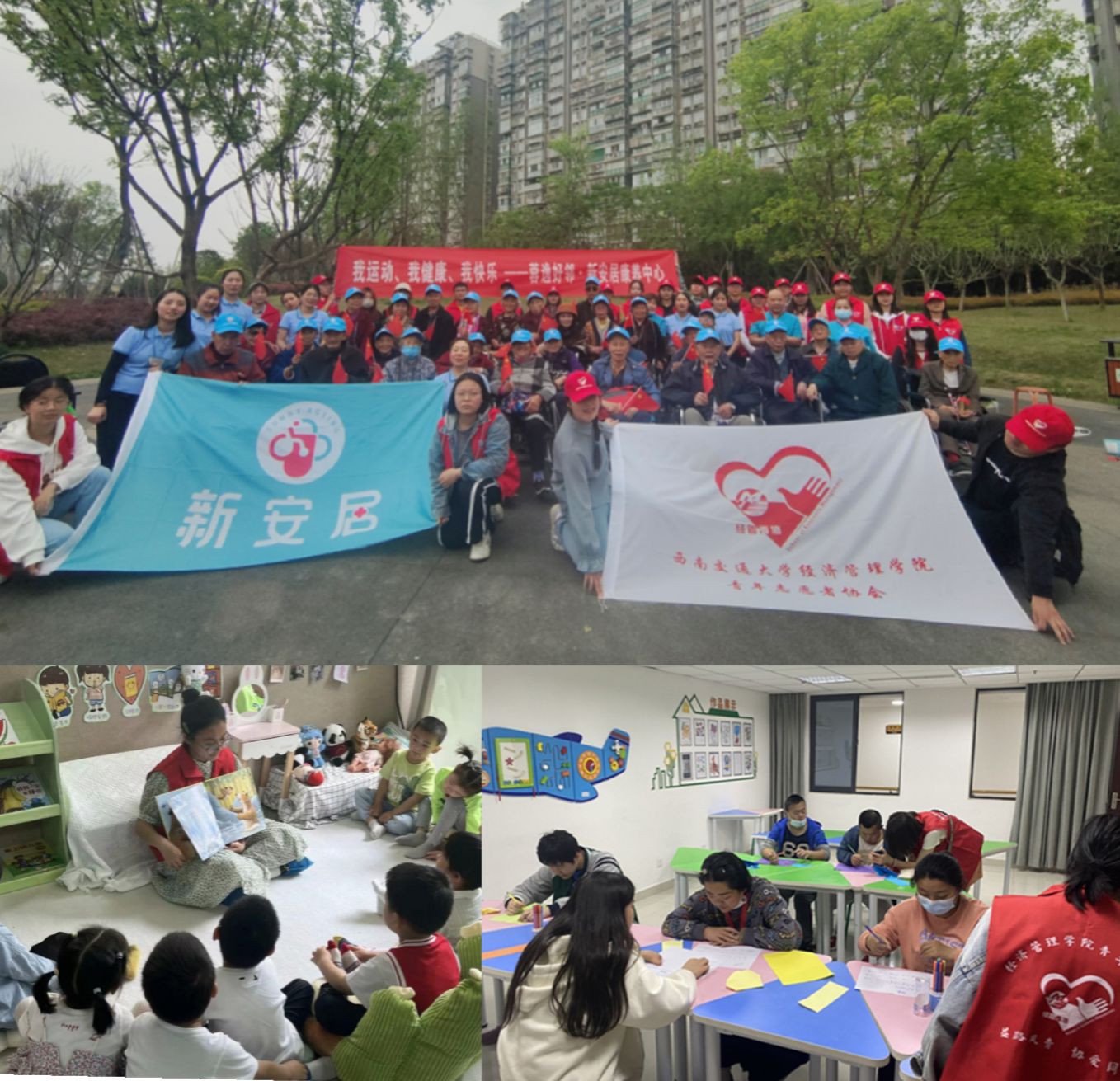 青年志愿者协会深入实施“青春志愿·爱在社区”大学生志愿服务社区行动,与四个社区签订协议并建立长期志愿服务基地,新增“喜安社区”“新安居养老院”两个志愿服务基地,常态化开展“阳光家园”、“敬老院”、“善工家园”、“交大幼儿园”基地志愿服务,将爱心向外蔓延:在金牛区茶店子街道居家养老服务中心为老人送去关怀;在金牛区包子漫画
