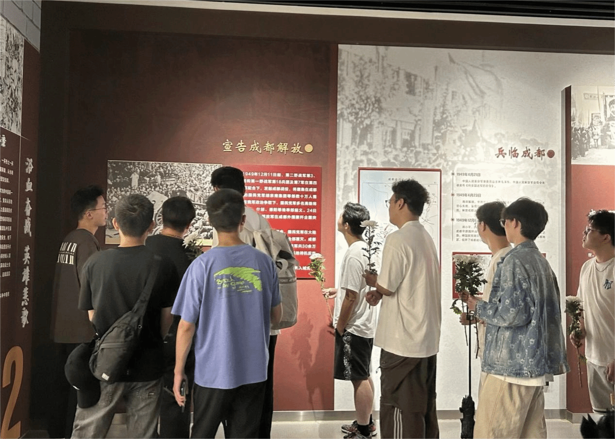 最后,同学们围绕此次主题活动的心得体会展开了交流讨论。同学们纷纷表示自己对解放成都的革命历史有了更深程度的了解,同时也点燃了同学们对红色精神满心的敬意和满腔的热忱,决心将这份精神传承下去,以实际行动践行对祖国的热爱,为祖国的繁荣富强贡献出青春的力量,为中华民族的伟大复兴而努力奋斗。