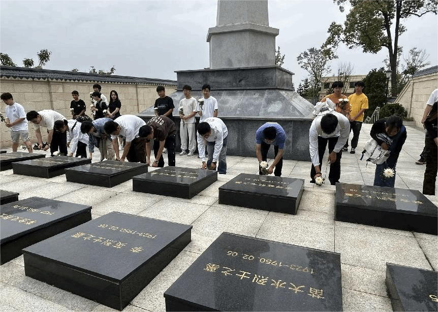 在瞻仰了革命先烈纪念碑之后,同学们为烈士墓进行了祭扫。祭扫仪式上,全体同学庄重肃立,为革命先烈敬献鲜花,随后同学们默哀致敬,向烈士们表达哀思。