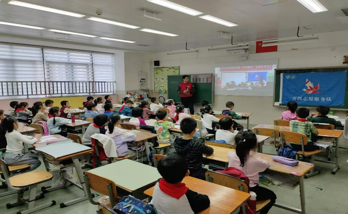 青鸽志愿服务队在指导老师陈建奇的带领下前往成都市高新区益州小学开展了“乡村振兴”志愿服务分享活动。