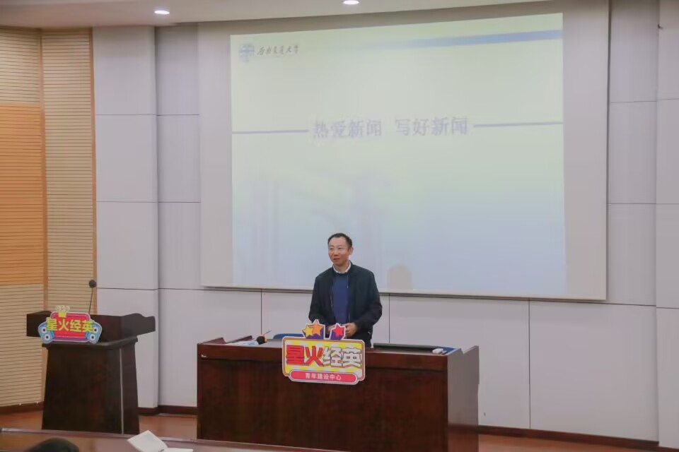 党委宣传部老师阮琦,本科生2024级辅导员、经英传媒中心指导老师王重月。本次团干部培训由阮琦老师主讲,主题为“热爱新闻,写好新闻”,旨在分享新闻的写作方法和技巧,帮助团干部们提升学写新闻的能力,并学会将写作技巧合理地运用在日常的新闻撰写中。