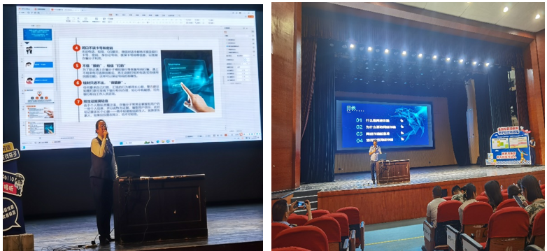 9月5日15:00在九里校区大学生会堂,邀请九里堤派出所赵磊警官和交通银行工作人员做防网络和电信诈骗专题讲座。赵磊警官以“防范网络诈骗 应知应会”为主题,结合大量现实案例,提醒同学们要学会甄别信息,时刻提高警惕,谨防落入套路;交通银行工作人员以“关注校园金融安全 青春护航 相伴成长”为主题,通过案例来介绍各种金融诈骗套路,教会同学们如何识别金融诈骗,希望同学们能成为勇气与智慧并存的反诈达人。9月组织所有学生认真阅读并签署《防范电信网络诈骗承诺书》和《拒绝买卖、转借、转租手机卡、银行卡等涉嫌违法犯罪》。不定期推送各种诈骗信息,提醒学生做到警钟长鸣,筑牢安全防线。