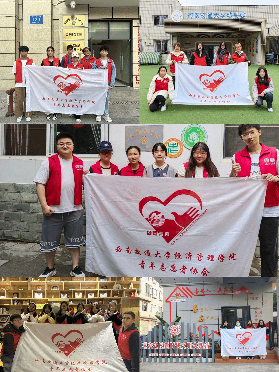 青年志愿者协会大力推进“青春志愿·爱在社区”大学生志愿服务社区行动,与五个社区签订协议并建立长期志愿服务基地,常态化开展“阳光家园”“敬老院”“善工家园”“交大幼儿园”“喜安社区”等基地志愿服务,传播爱心与关怀:在金牛区的茶店子街道居家养老服务中心为老人们提供陪伴;在包子漫画