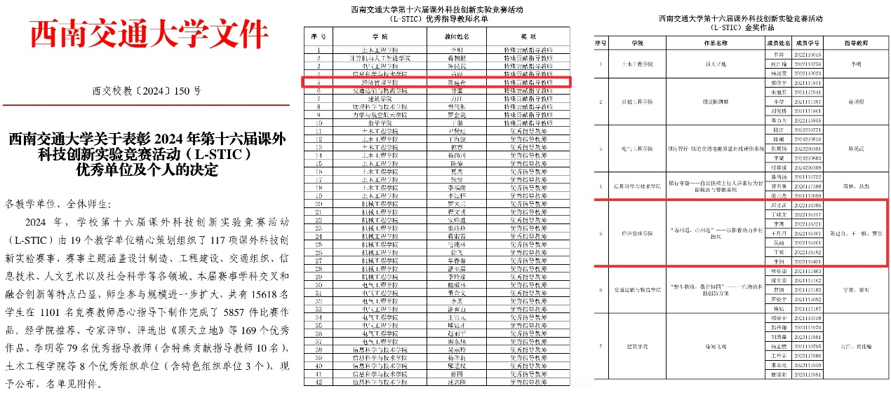 第十六届课外科技创新实验竞赛活动(L-STIC)的金奖作品,指导老师陈建奇被评选为特殊贡献指导老师。
