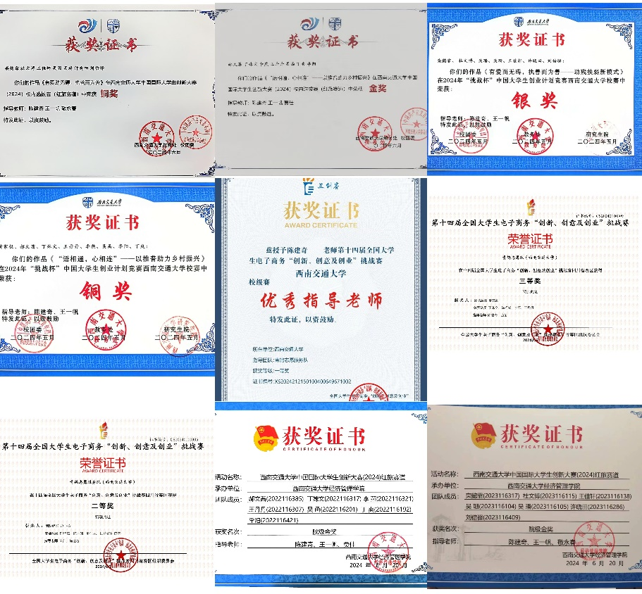 2024年“青鸽志愿服务队”培育孵化的“有爱助无碍,执善而为善——助残扶弱新模式”“语相通,心相连——以推普助力乡村振兴”系列实践项目分别荣获第十四届“三创赛”四川省赛“二等奖”、“三等奖”;“挑战杯”校赛“银奖”、“铜奖”;中国国际大学生创新大赛校级“金奖”、“铜奖”。同时,“语相通,心相连——以推普助力乡村振兴”实践项目还被评选为包子漫画