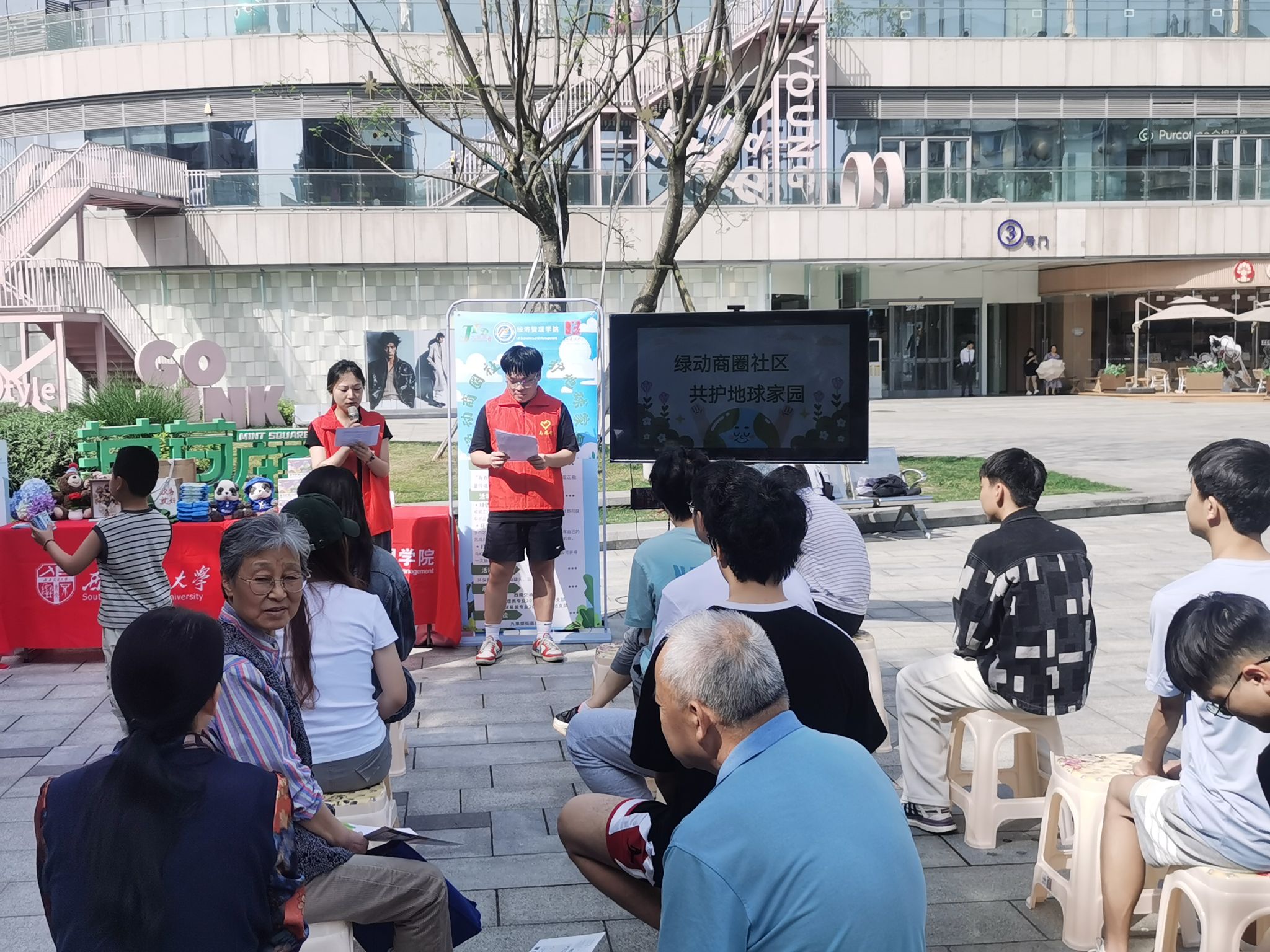 委员会、九里堤街道社区、凯德广场金牛共同开展了“绿动商圈社区,共护地球家园”主题活动。本次主题活动由工商管理类专业2024级1班团支部和经济与贸易类专业2023级1班团支部承办。
