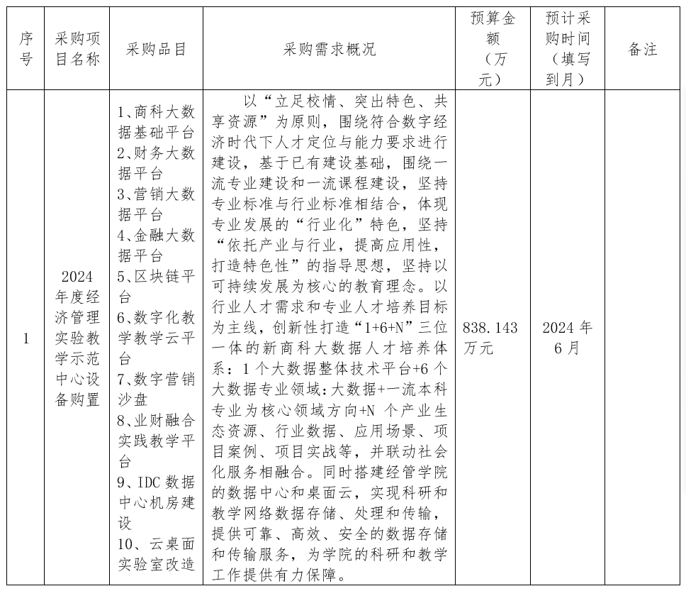 为便于供应商及时了解采购信息,根据学校有关规定,现将经管实验中心采购意向公开如下: