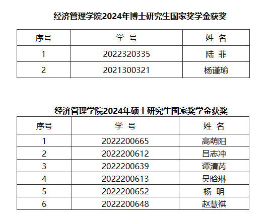 2024年研究生国家奖学金获奖名单。现公示如下: