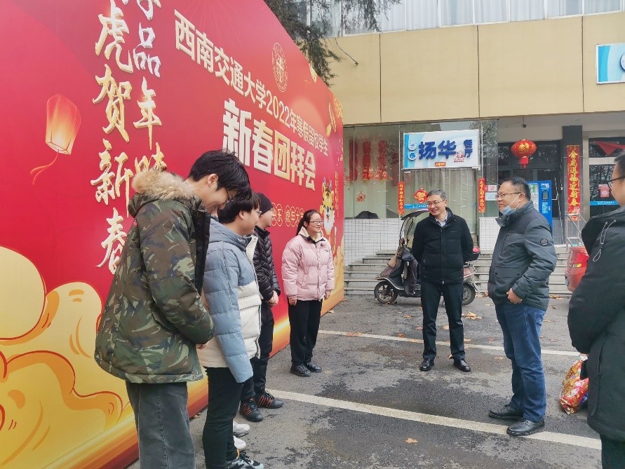 王斌与留校过年的同学们展开了亲切地交谈,询问了同学们的住宿、就餐等生活情况,并叮嘱同学们要利用好这个假期,多读书,注重学业,同时也要加强身体锻炼。因为疫情等原因大家无法回家过年,但在学校过年也是快乐的,要及时给远方的父母亲人拜年和报平安,有什么困难要及时联系学院,学院会及时帮助大家,相信疫情一定会过去的,我们要有战胜它的勇气,也要有积极乐观面对生活的信心,大家还要特别注意安全,在平安祥和中过好年。