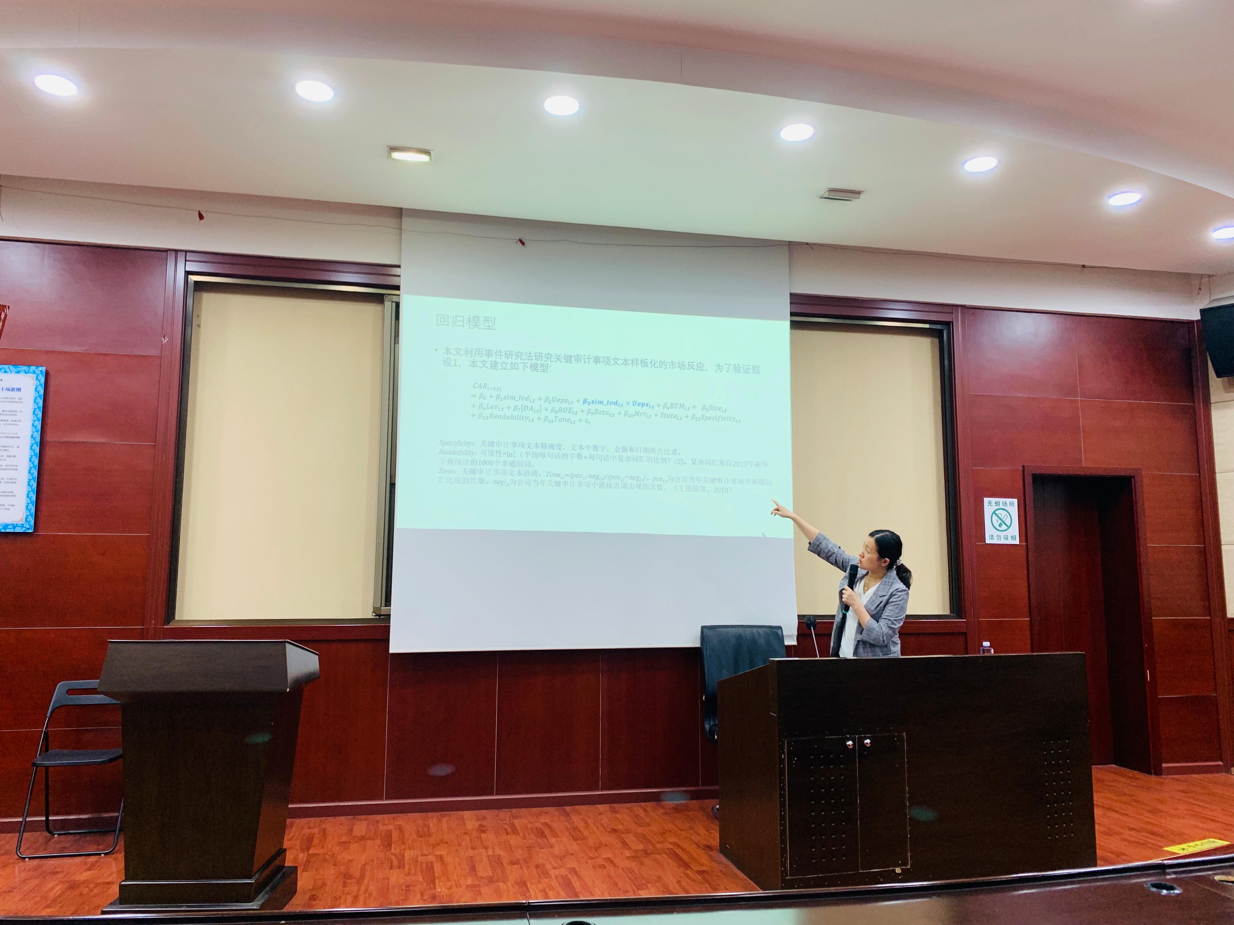 周嘉南教授在九里校区0224室开展了题为“关键审计事项样板化的市场反应研究”的学术研讨会。会议由马锋副教授主持,金融与财务学系全体教师及部分研究生参加了此次学术交流。
