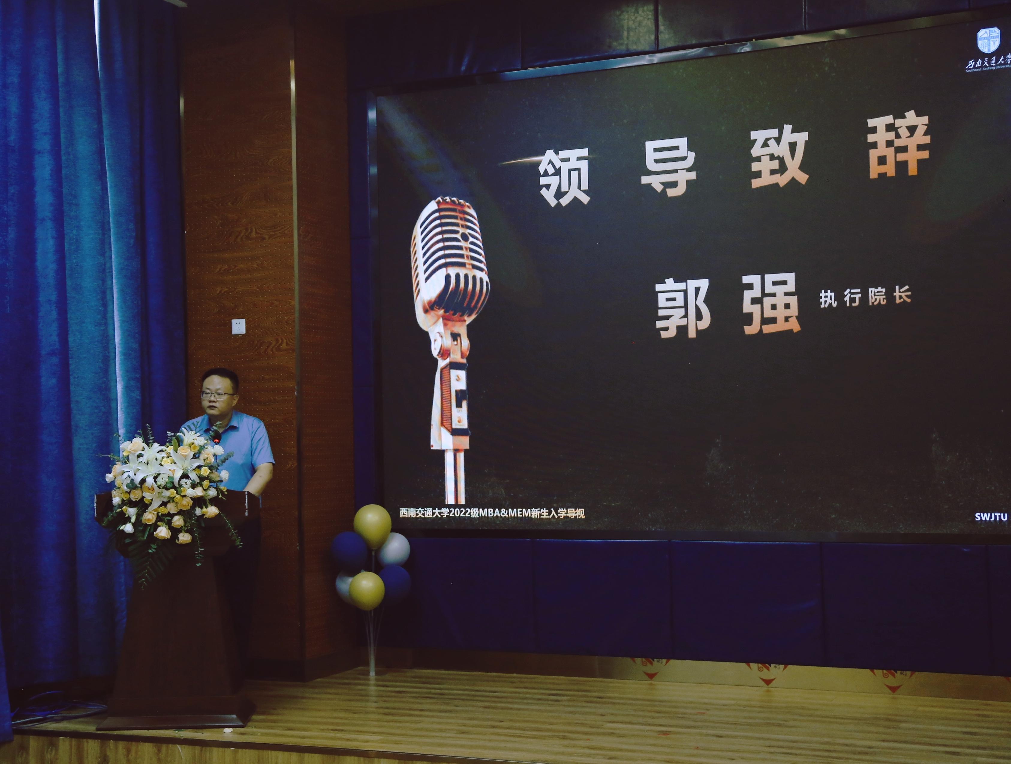 执行院长郭强教授的致辞正式拉开了入学导视的序幕。郭院长介绍了西南交大以及经管学院的历史沿革、发展现状和教育理念,并嘱咐即将进入校园的新生要勤学知识,学院会成为同学们之间的纽带和窗口。他对新同学也提出了几点希望:要修身立德,德才兼备,发扬艰苦奋斗的精神,不断加强自我修养以及学识、能力的拓展;要精诚合作,融合集成加强同学间、师生间、各行业领域间的交流,融合碰撞启迪新思维;要勇挑重任,融创提升,希望同学们提升创新思维,融创智力资本,同时希望同学们保持高度社会责任感,勇担新时代“交大人”的责任。