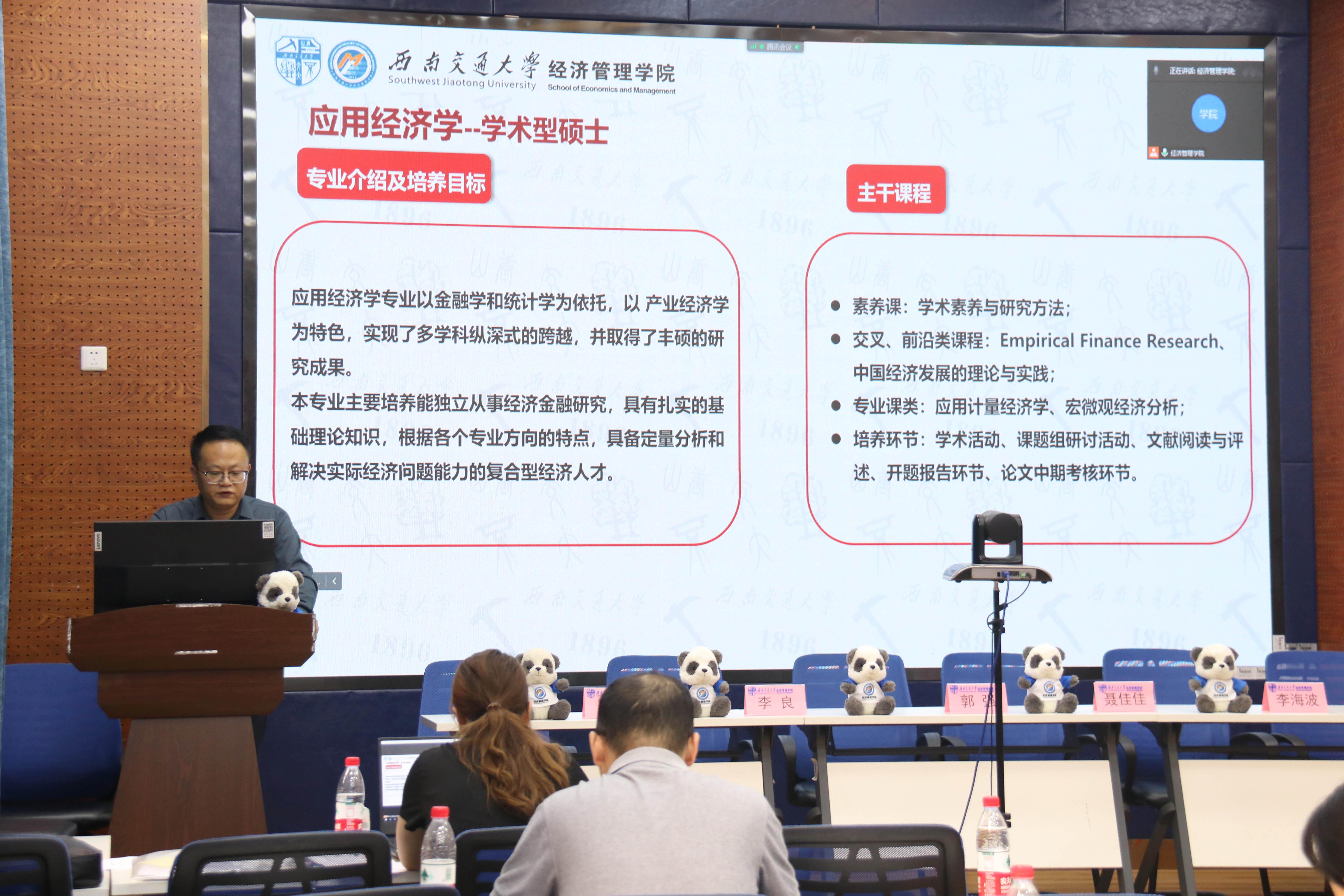 的发展历史、发展目标、发展使命以及师资力量,并介绍了学院所开设的硕博专业以及各专业的培养目标、主干课程、近三年的招生情况,同时,他就学生的毕业率、就业率和行业分布情况做了相关的展示。