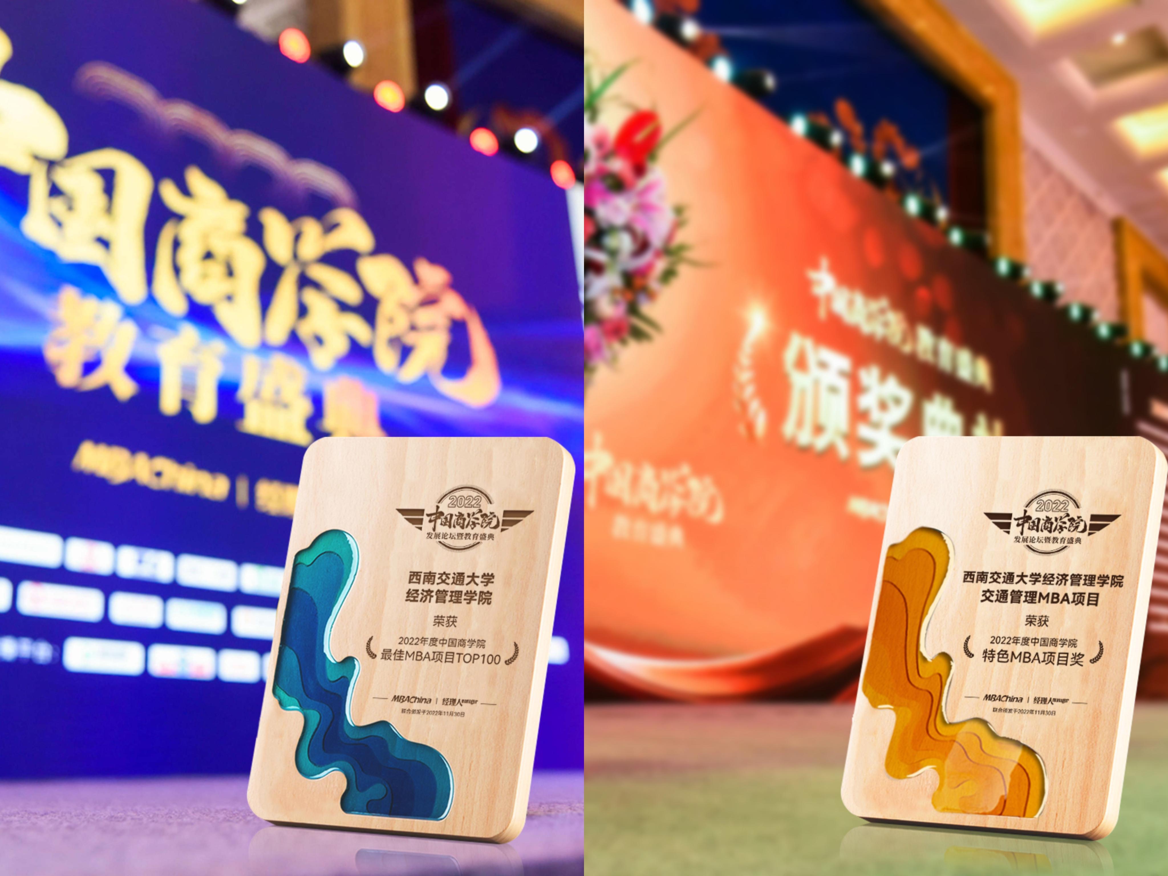 交通管理MBA项目荣获“2022年度中国商学院特色MBA项目奖”;宾勇刚、唐骐两位校友荣获“2022年度中国商学院MBA项目优秀校友奖”。