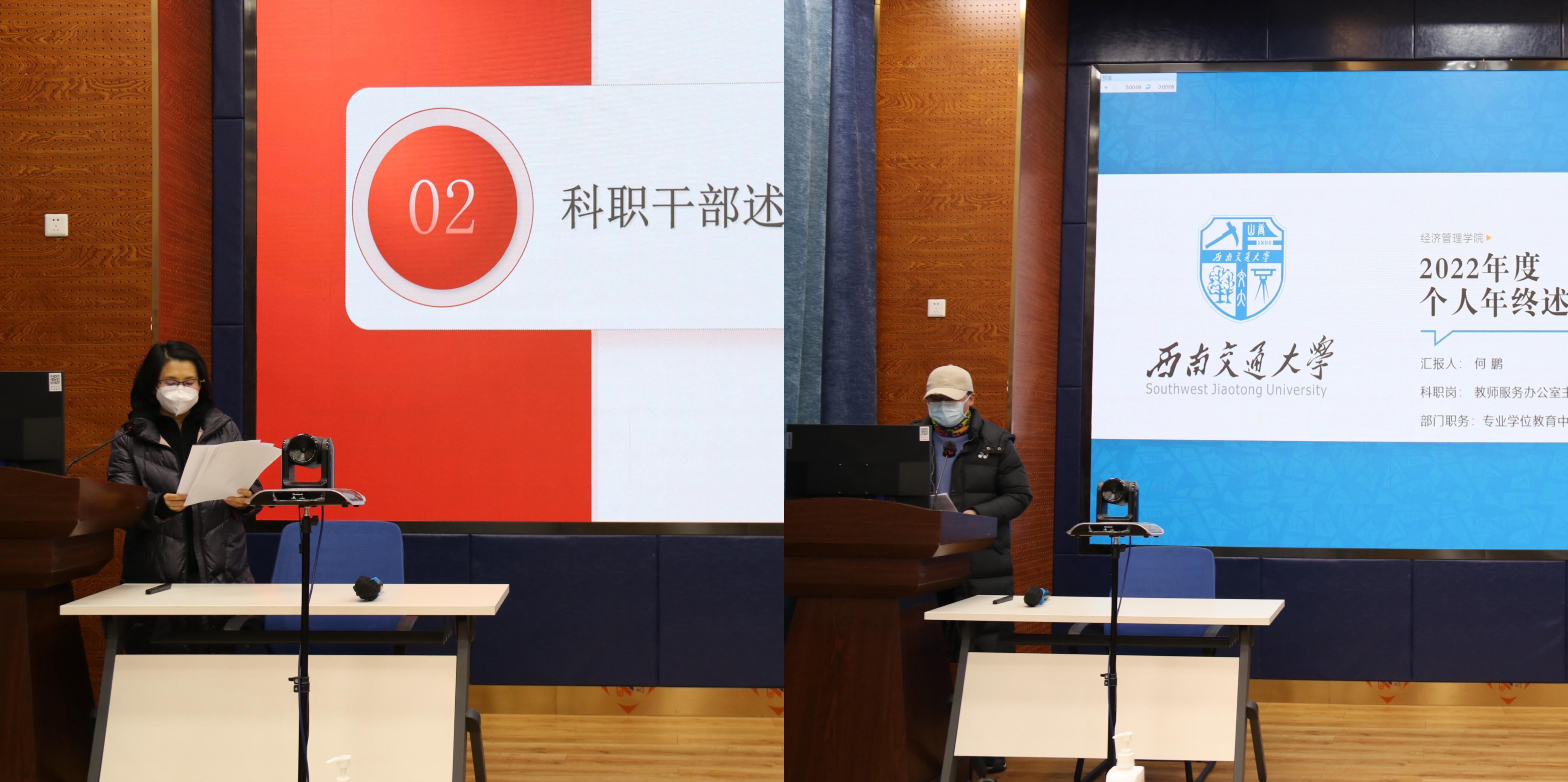 会议第二阶段,科职干部对本年度的工作进行了总结汇报。学院学生工作组副组长、专职组织员、教师服务办公室主任、学生支持办公室主任、综合事务办公室主任共7名科职干部对本年度的工作进行了总结和反思,并对新一年的工作计划和目标作出了展望。
