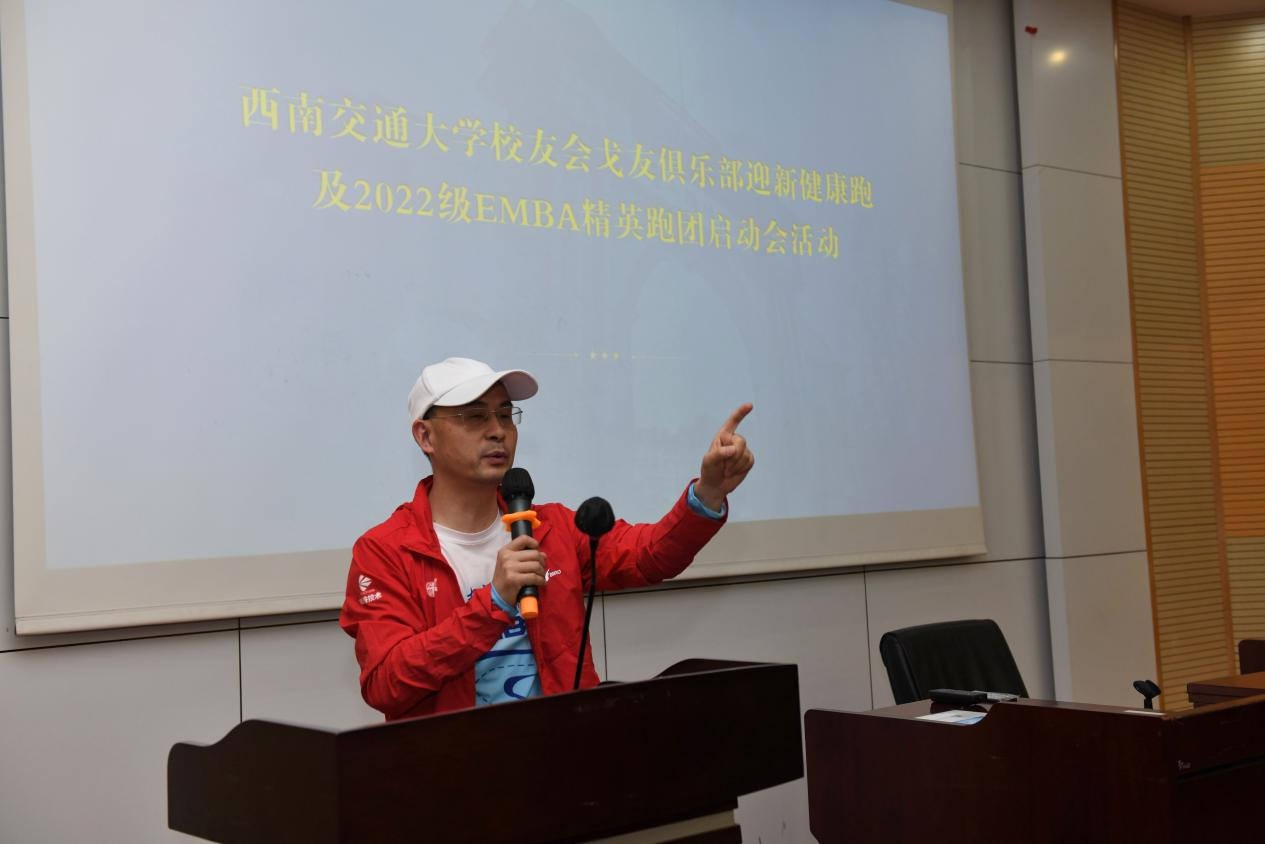 首先,执行院长郭强代表学院致辞。他对EMBA校友会戈友会俱乐部“老戈”们的到来表示欢迎,鼓励2022级EMBA同学们参加到菁英跑团和戈壁挑战赛活动中来,号召大家积极参与运动,强身健体,加强彼此的交流和互动,并强调要注意安全,把健康运动、科学运动成为一种自觉的习惯。