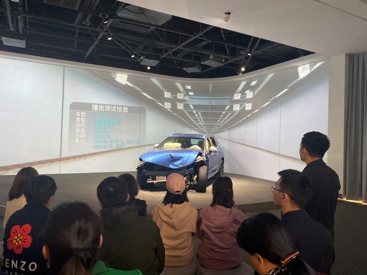 在这里大家详细了解沃尔沃发展历程、品牌文化和沃尔沃汽车“安全、健康、环保”理念及“电动化、智能化”创新成果。通过AR组装体验与虚拟驾驶,安全碰撞实验,沃尔沃巨幕观影体验,了解了作为一个拥有近百年悠久传承的豪华汽车品牌,沃尔沃对产品质量一直都有着极高的要求,品质、安全、环保,正是沃尔沃的三大核心价值。让大家印象最深刻的是:沃尔沃用一台XC60的碰撞测试成绩展现了自己的硬核实力,以56公里每小时速度受到正面偏置撞击,可以看到安全气囊全部爆出,并且A柱没有明显变形,车门能够正常开启,车内空间没有太多挤压,为驾驶员和副驾驶都提供了极大的安全性。