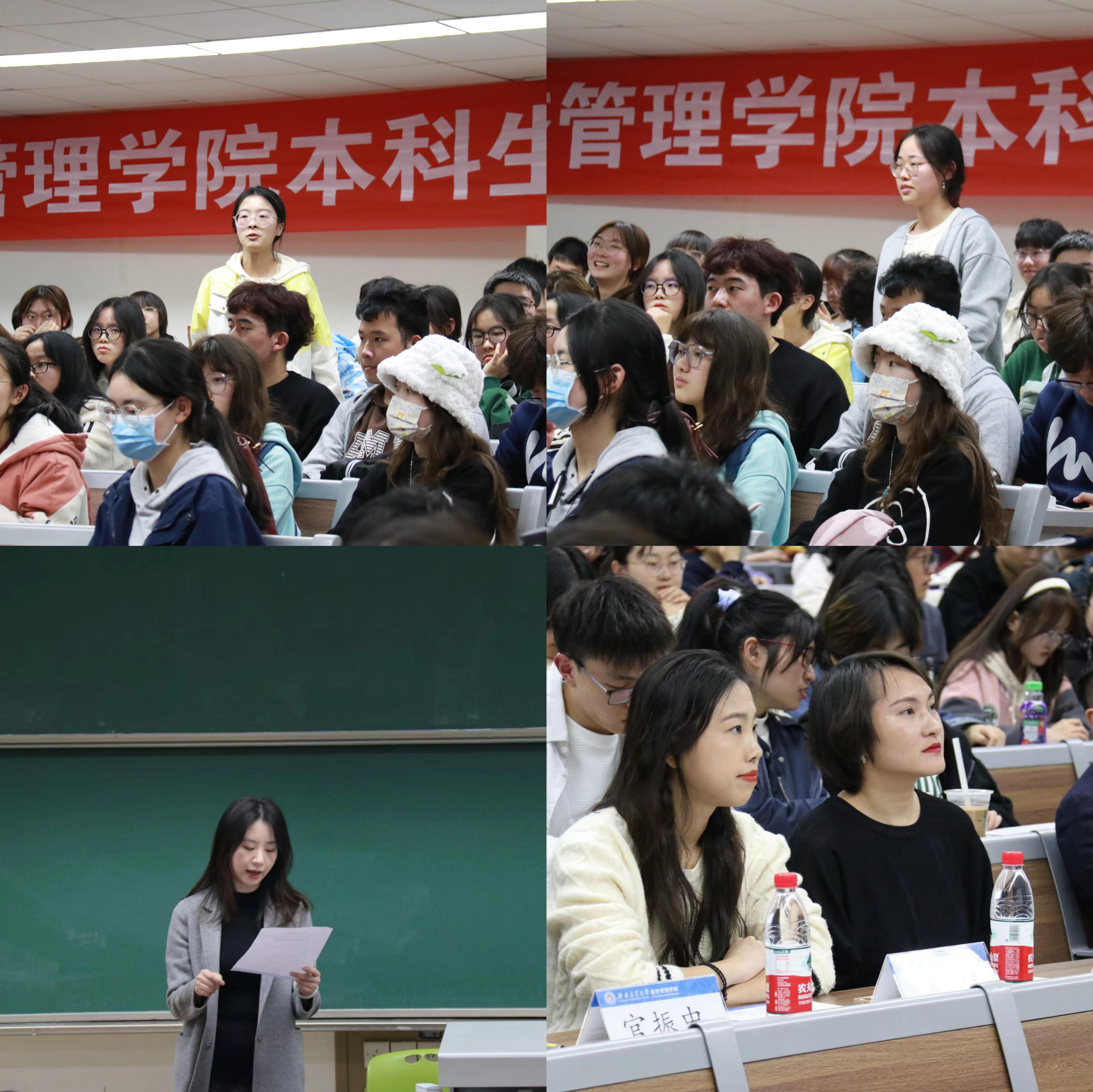 2022级本科生大类内分专业宣讲会在九里校区4号教学楼J4310、J4318、J4319教室进行。学院党委副书记杨宏毅,经济学系专业负责人窦祥胜、副系主任陈有真、优秀青年教师代表郭丽娟,金融学系副系主任郭姝辛,信息管理与信息系统专业负责人官振中,工程管理系副系主任陆绍凯,工商管理专业负责人范春梅,会计学系优秀青年教师代表刘雨柔,学生工作组辅导员张媛媛、薄慧、王子琦以及本科教育中心副主任尹一出席了会议。会议由本科教育中心漆敏主持。