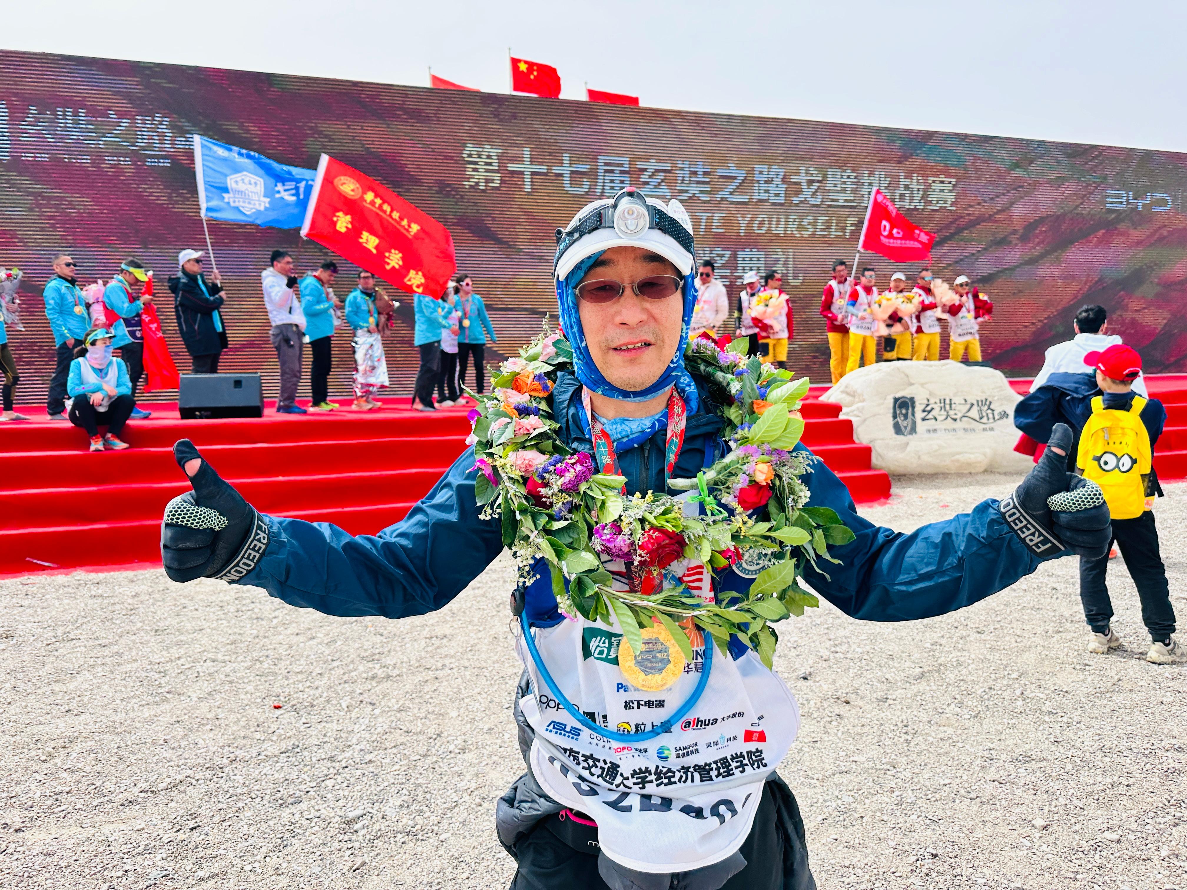 “孤峰绝顶万余嶒,策仗攀萝渐渐登。”在玄奘法师的笔下,玄奘之路,孤绝相伴,日月同尘,寡悬天际。玄奘之路的比赛却又是温暖与团结的不断重逢。全程比赛没有对手只有戈友,在超过前方戈友时,他会给你一句“加油”;迎风跑不动时,也会有温暖的手掌在后面助推;“茫茫戈壁,走过都是兄弟姐妹”感动了每一位戈友。而幕后英雄们更让人动容,教练、队医和后勤保障的队友们一直都会站在终点,高举队旗,犹如灯塔般的身影,让队员看到回家的港湾。