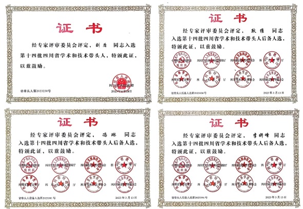 刘盾教授入选“第十四批四川省学术和技术带头人”,李妍峰教授、耿维副教授、冯琳副教授入选“第十四批四川省学术与技术带头人后备人选”。