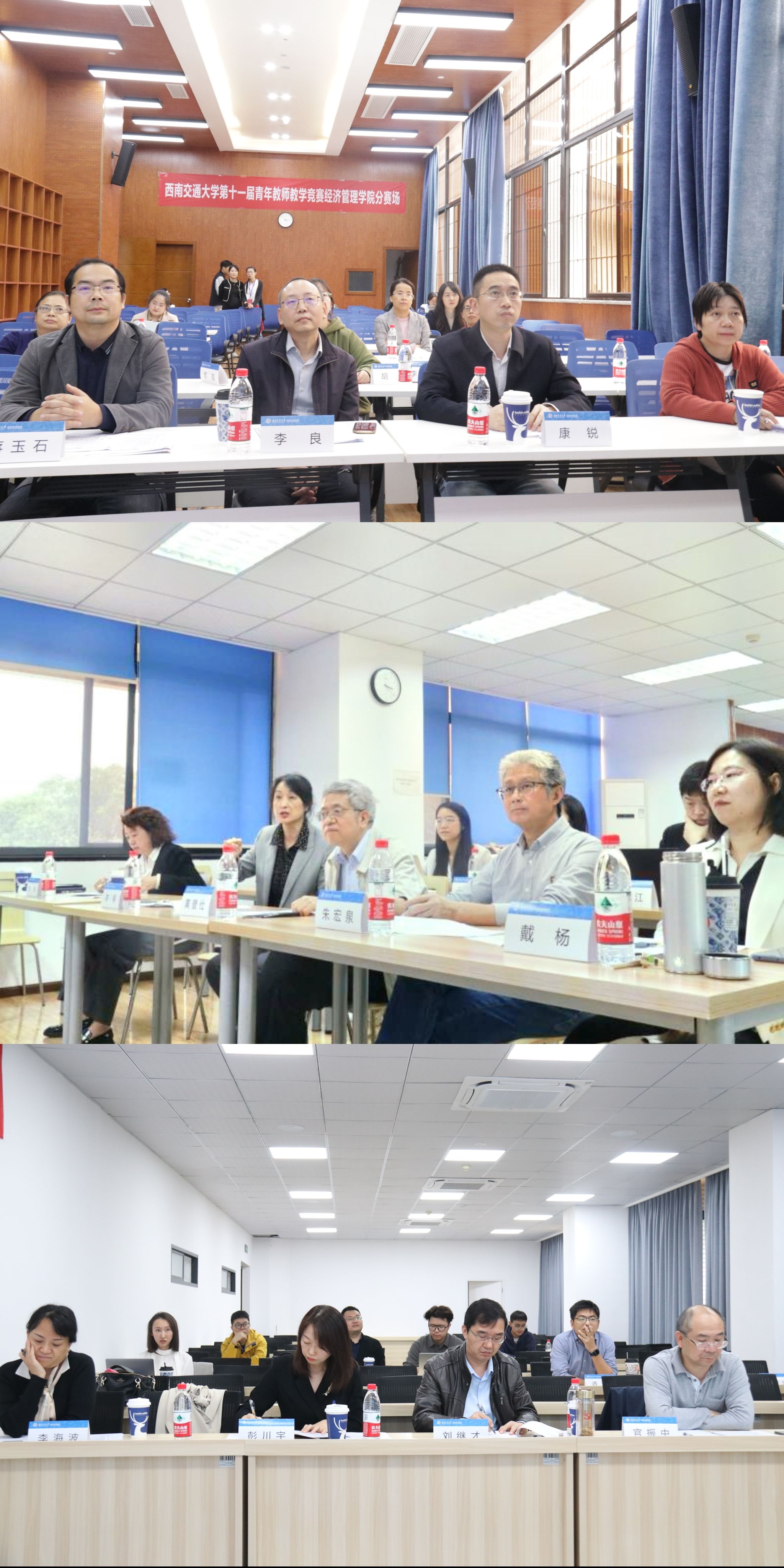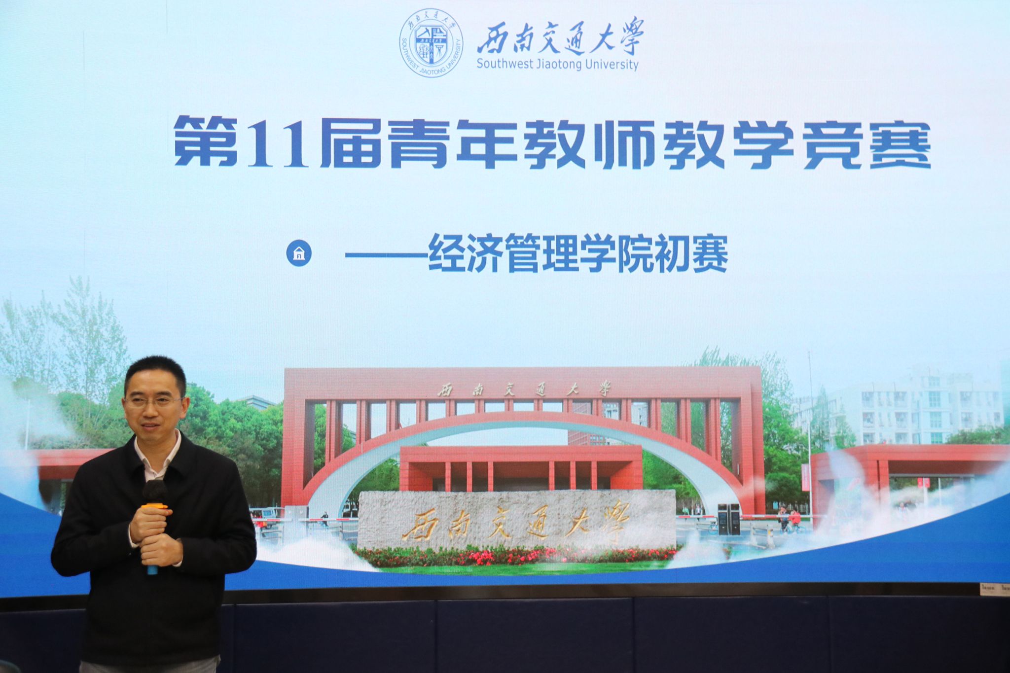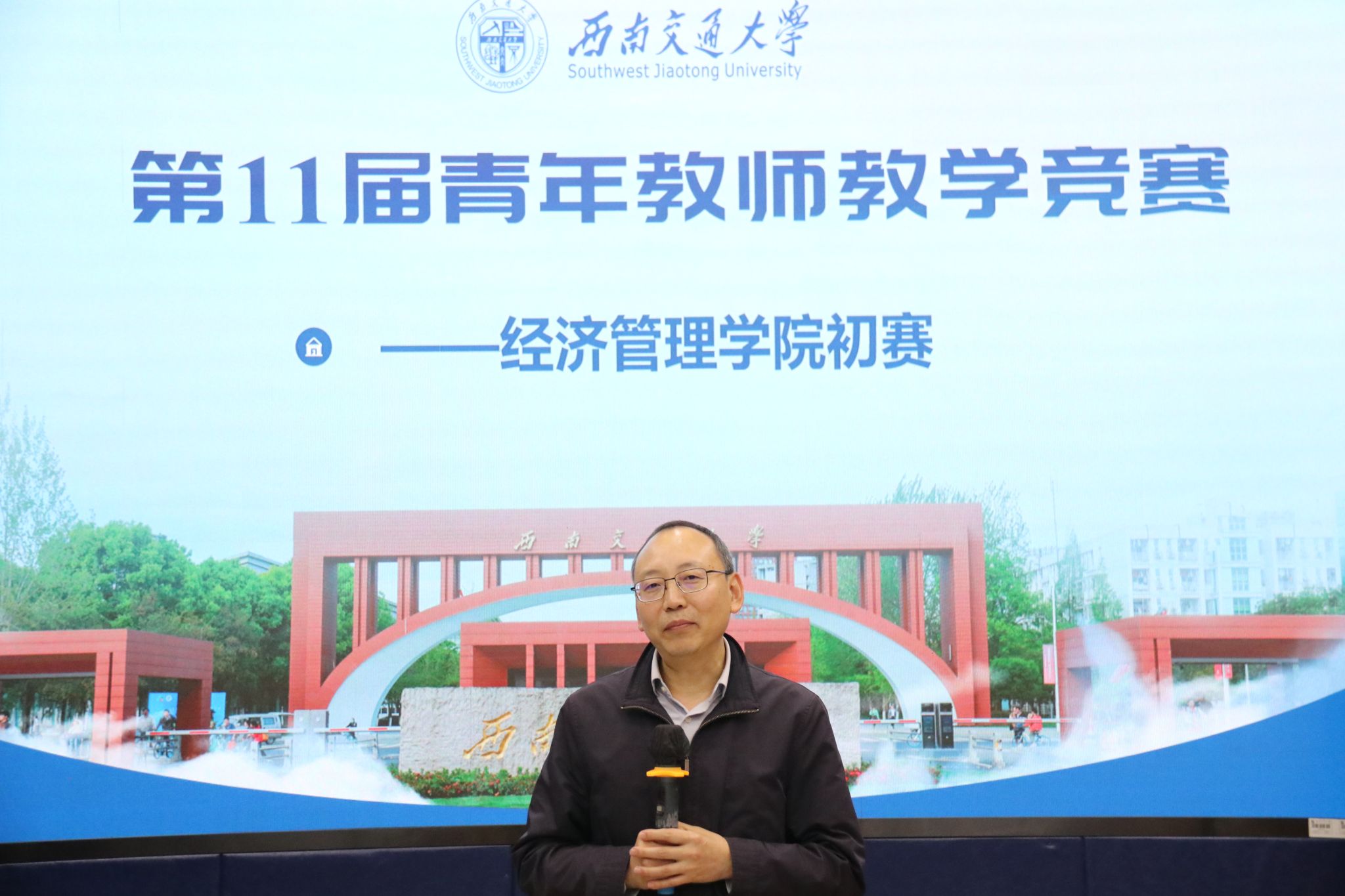 精心组织工作表示肯定,他谈到参赛教师准备充分,无论是在选题、讲述还是课件的制作上,都体现了经管院老师们的用心与认真。随后,他结合往年学校教学竞赛的经验要求提出了几点建议: 一是在选题上下功夫,内容的组织既要有完整性还要融入特色,瞄准主题方向,发挥教学团队作用;二是注重课程思政的融入,做到潜移默化、润物细无声,合理引用和适度延伸;三是增加课堂互动的灵活性,优化教学设计。
