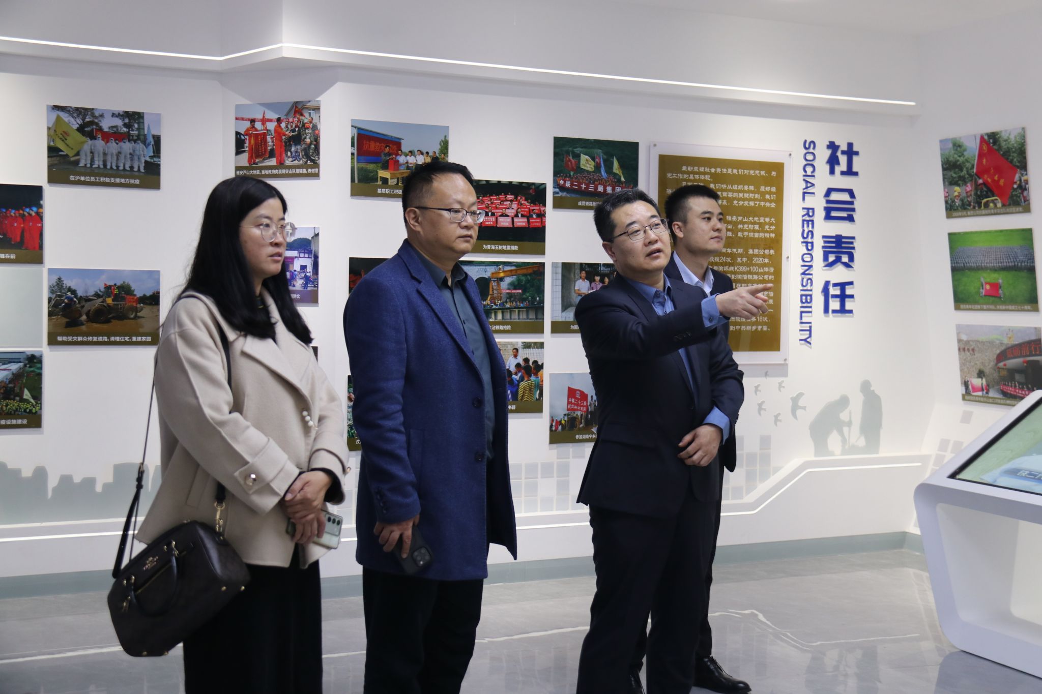 一行人员进行热情接待,并带领参观集团展厅,就集团发展历程、人才培养、创新文化、荣誉成就、高质量发展等内容做详细讲解。