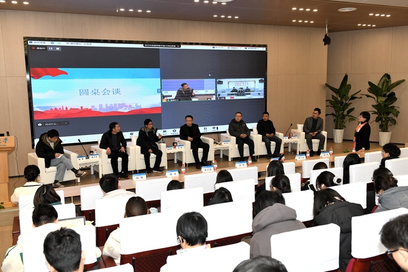 该校国内合作与教育培训管理处副处长阮波代表主办方会见了各方代表和全体创作者,并观摩了作品展示。展示作品的过程中,创作者们向来宾分享了自己的创作灵感和作品意义。其中魏欣妍同学及团队作品《走出大山,走向世界》将高铁元素与盐源的民族风情巧妙交融,体现了包子漫画