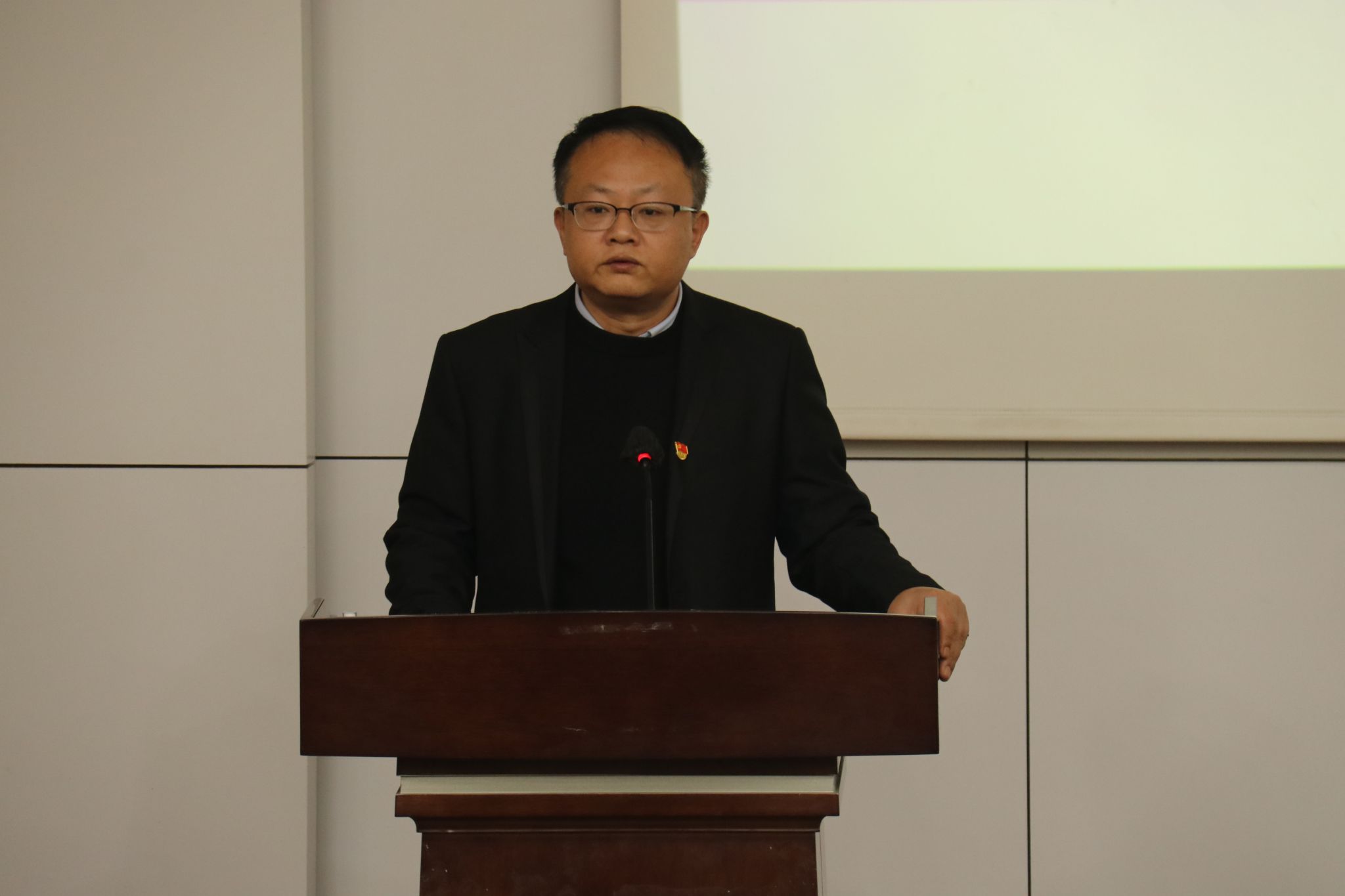 2023年度党建满意度测评暨中层领导班子和领导干部述职测评大会在九里校区0215教室召开。学院党政领导班子全体成员,学院教职工和学生党员代表参加测评,会议由学院党委书记郭强主持。