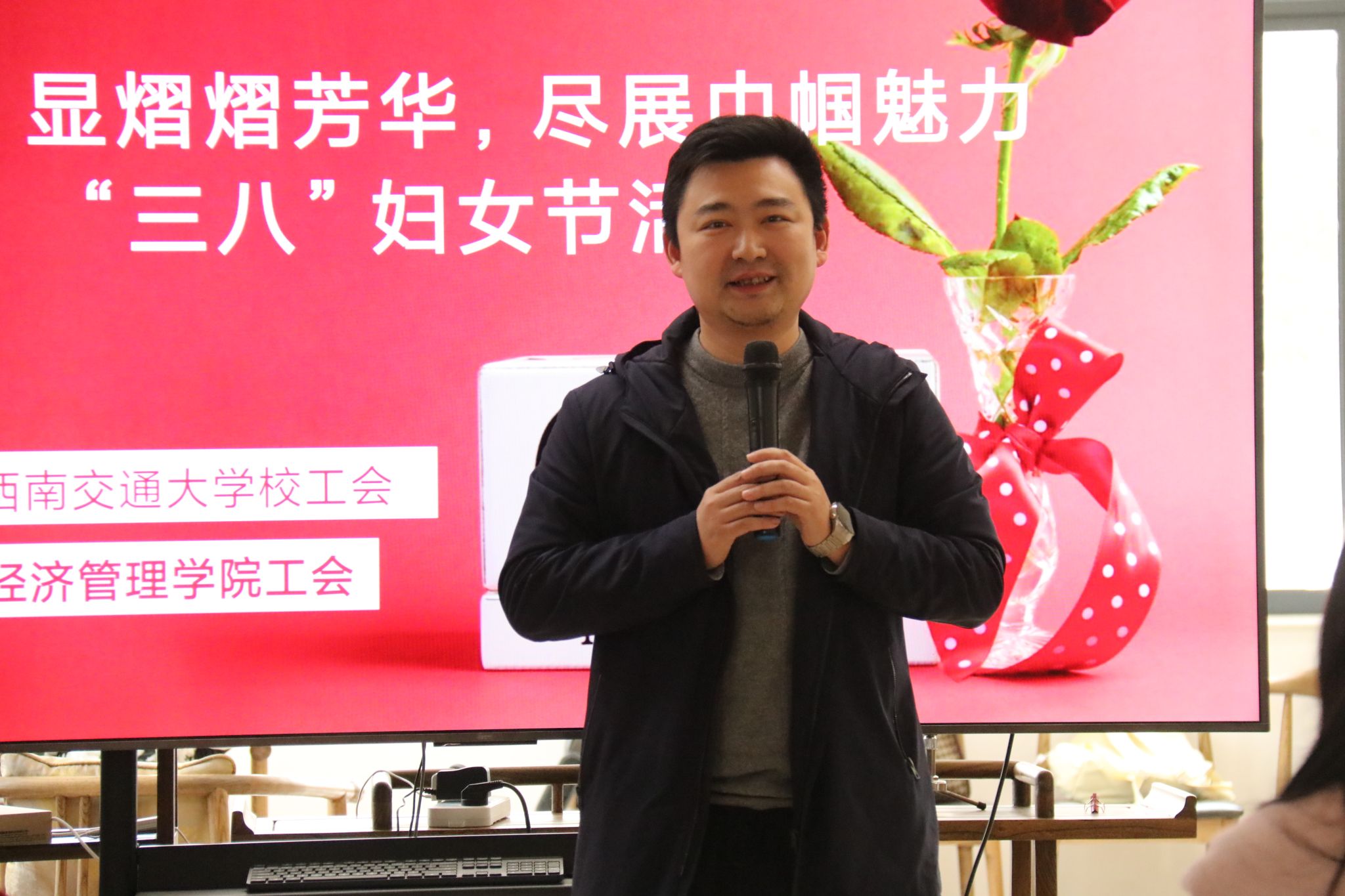 党委副书记、工会主席晏理斌出席活动,并对参加活动的全体女教工送上节日祝福,他表示,在平日里承担着繁重的教学科研、行政管理等工作的女教工,永远是校园中最美丽的风景线,祝福所有女教工岁月如歌,生活如诗,永远健康美丽。
