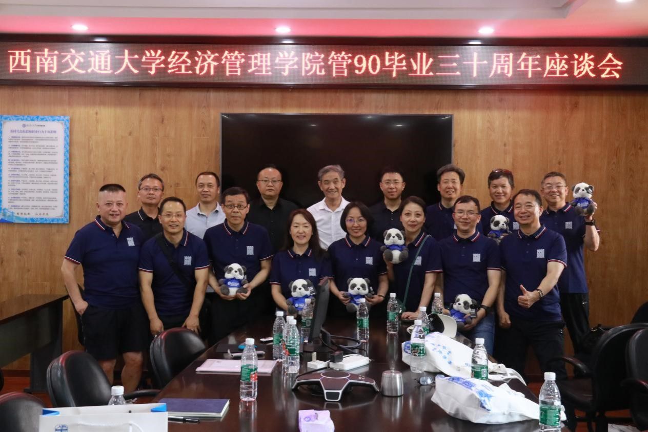 管90毕业三十周年座谈会在九里校区0号教学楼0607会议室举行。出席本次座谈会的有学院党委书记郭强、院长韩科、综合事务办公室主任何鹏、学院教师代表张震宇,以及时任管理工程系党总支副书记梁锦唐和13名从海内外返校齐聚在一起的管90校友们。
