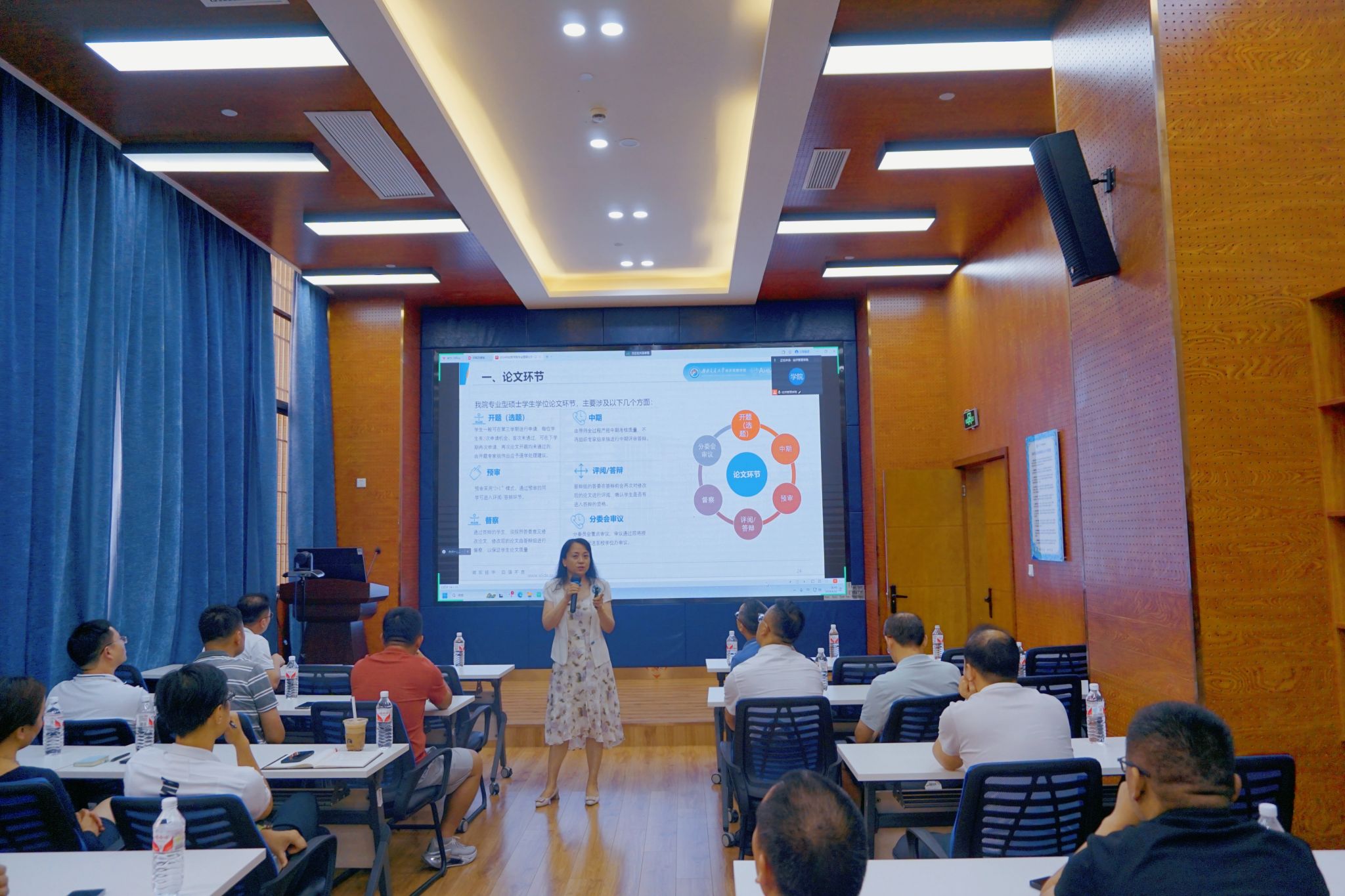 为进一步提升学院专业型硕士生导师指导水平,6月22日下午,学院专业学位教育中心在0218教室召开2024年新增专业型硕士生导师培训会。学院党委书记郭强,院长韩科,副院长李良,专业学位教育中心主任李海波及副主任诸波出席了培训会。