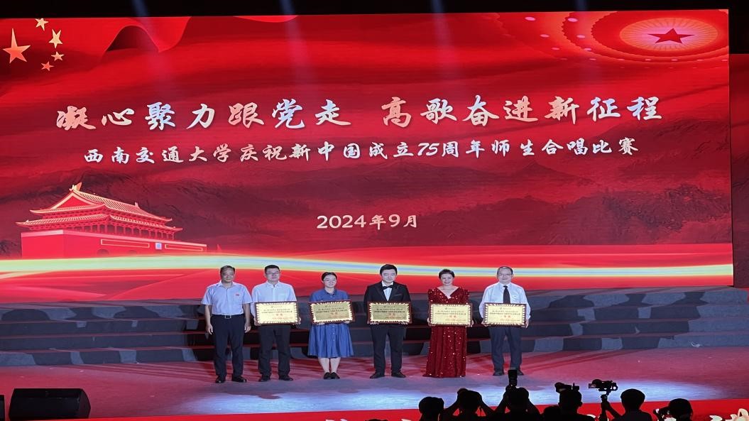 “如果信仰有颜色,那一定是中国红。生在红旗下,长在春风里。目光所至皆华夏,五星闪耀皆信仰。愿以吾辈之青春,捍卫盛世之中华。愿山河无恙,祖国繁荣昌盛”。慷慨激昂的开场白后,经管师生们齐声高歌、声动梁尘,凭借精彩的舞台效果、响亮动情的歌声,最终取得了三等奖的成绩,用音乐与声音的力量为新中国成立75周年呈现了圆满的答卷。