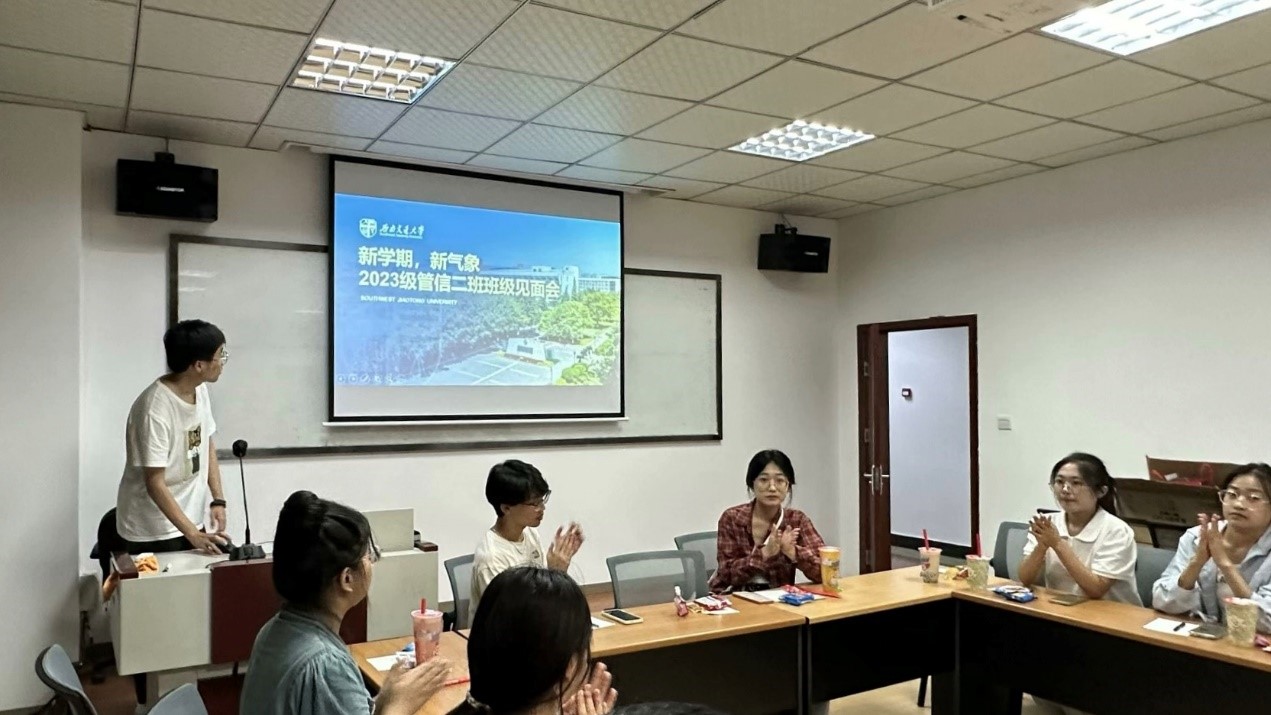 管信二班班导师范宇辰、朱琳与同学们浅谈了目前管信专业的大环境,认为管信既具有专业性,又具有综合性。两位班导师还结合了自己当年的学习感悟和多年的工作经历对专业进行多方面的补充和拓展,用实际案例告诫同学们要有市场思维和营销意识。
