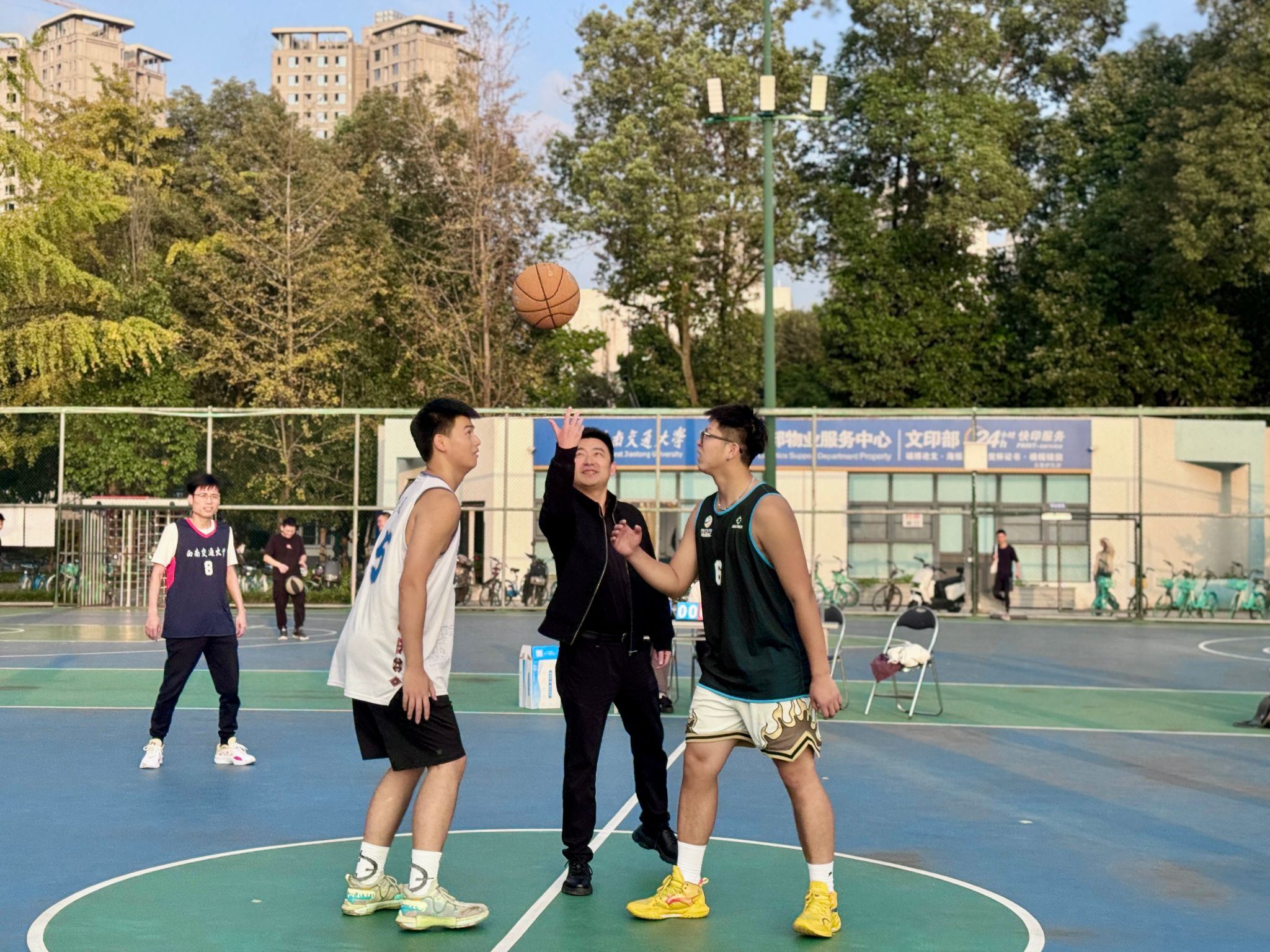 师生篮球友谊赛在九里校区室外篮球场成功举办。学院院长韩科,党委副书记、纪委书记晏理斌,副院长马锋,以及学院部分教师、学生代表参加比赛。